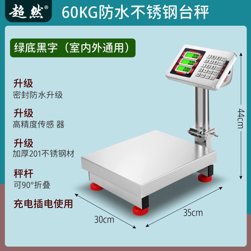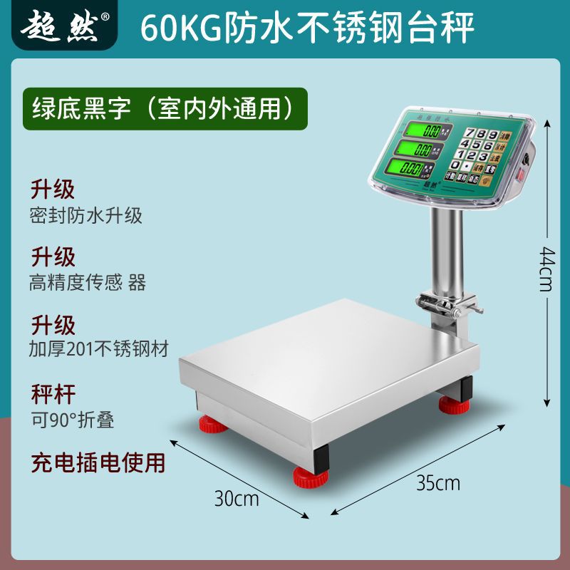 초월 전체 스테인레스 스틸 새로운 전자 저울 방수 60kg 해산물 및 수산물 300kg 가정용 전자 저울