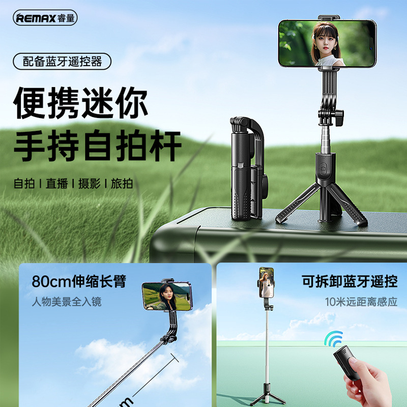 REMAX 휴대 전화 블루투스 셀카 스틱 0.8m 야외 휴대용 셀카 스탠드 삼각대 라이브 스트리밍 스탠드스토어 가기