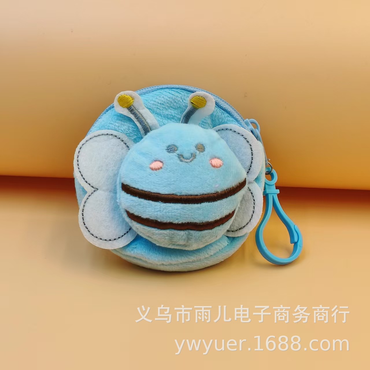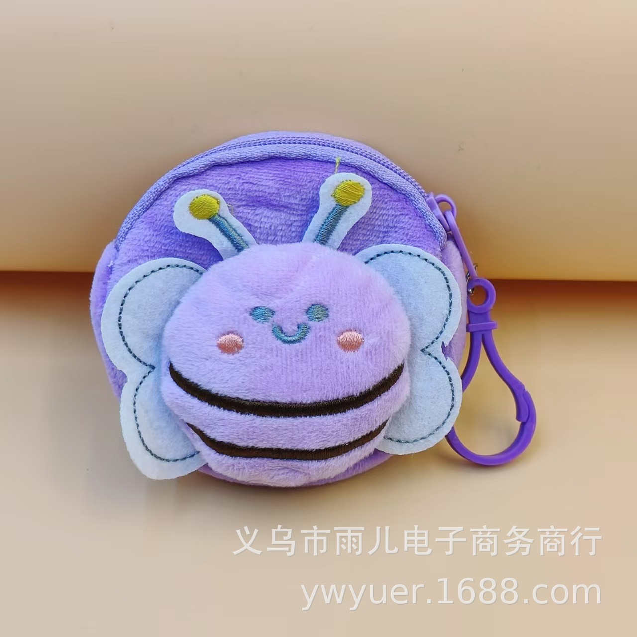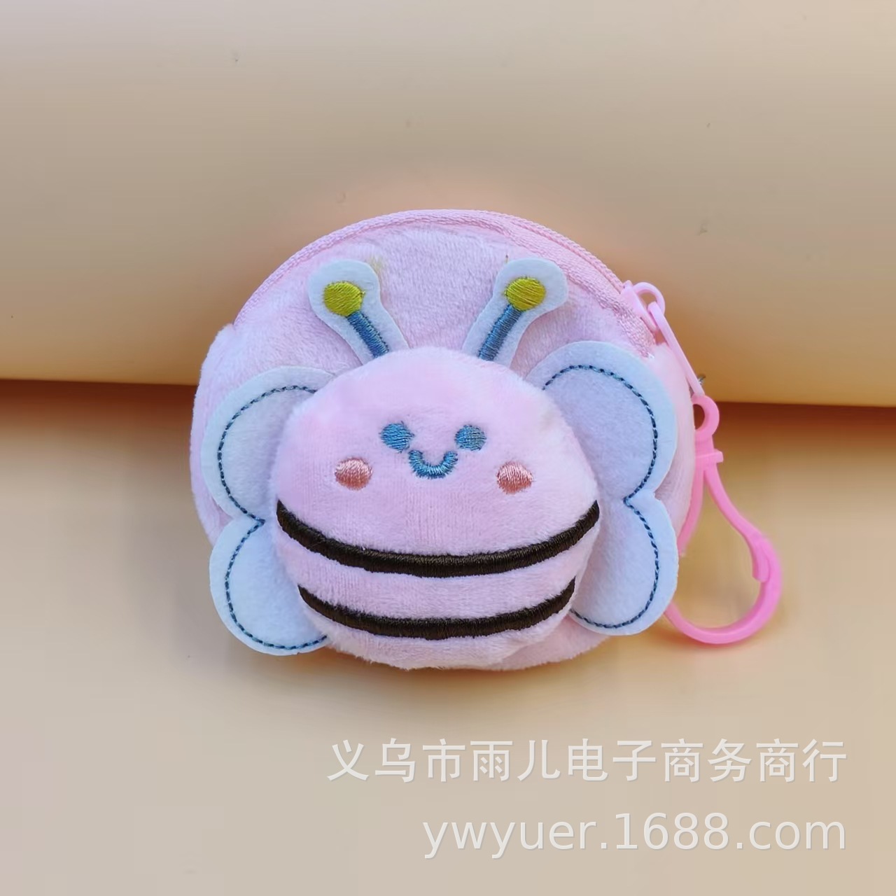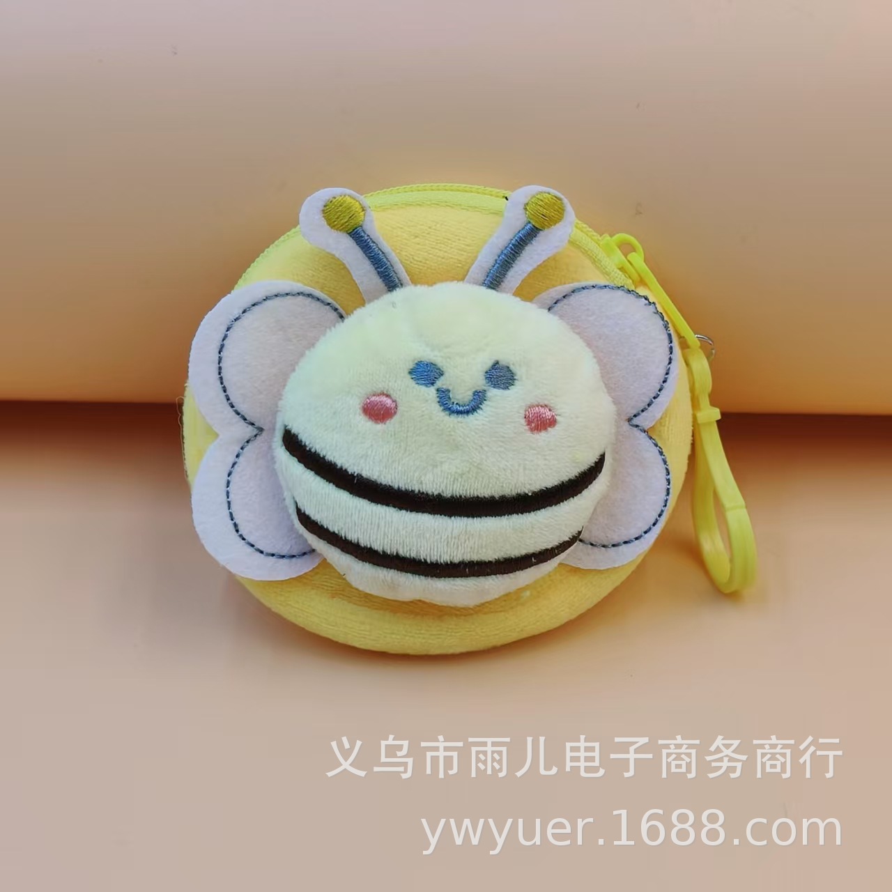 귀여운 소녀 하트 작은 꿀벌 만화 미니 동전 지갑 펜던트 만화 플러시 헤드폰 보관 가방 ins 펜던트스토어 가기