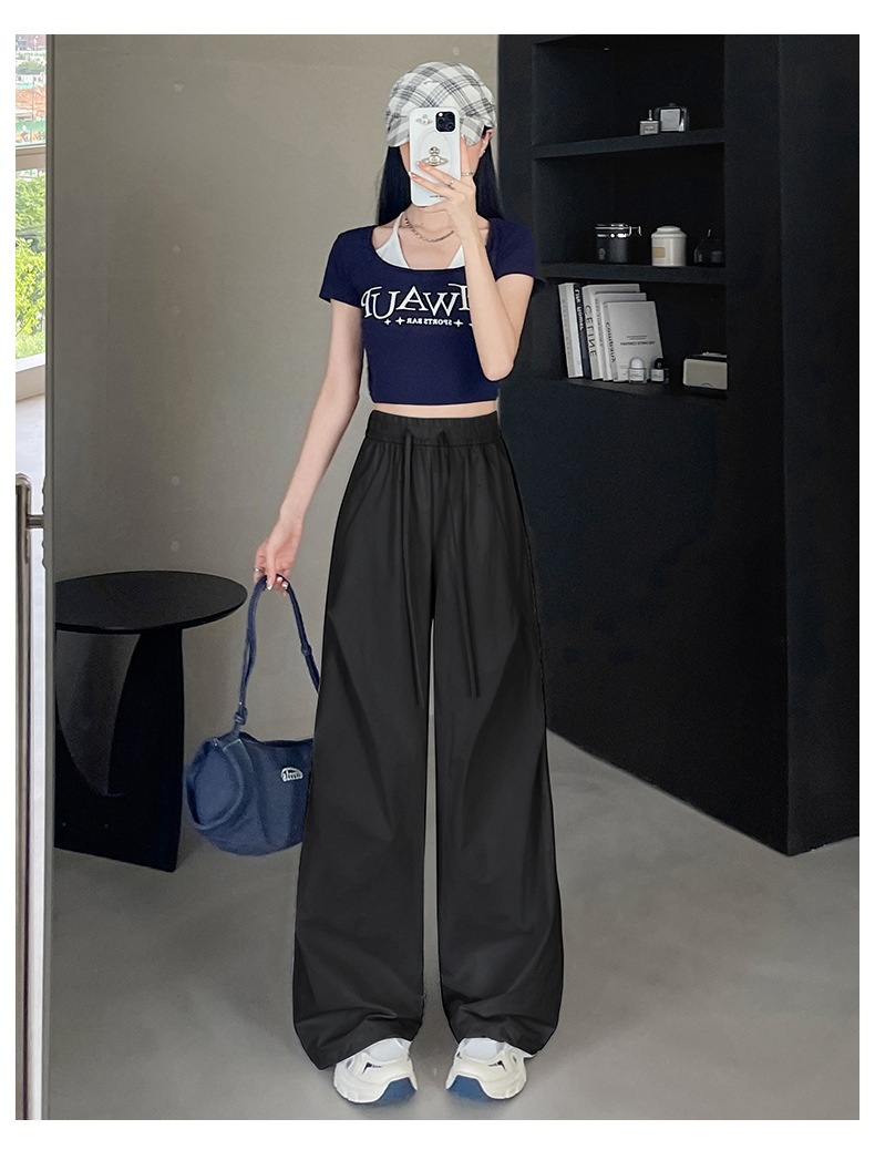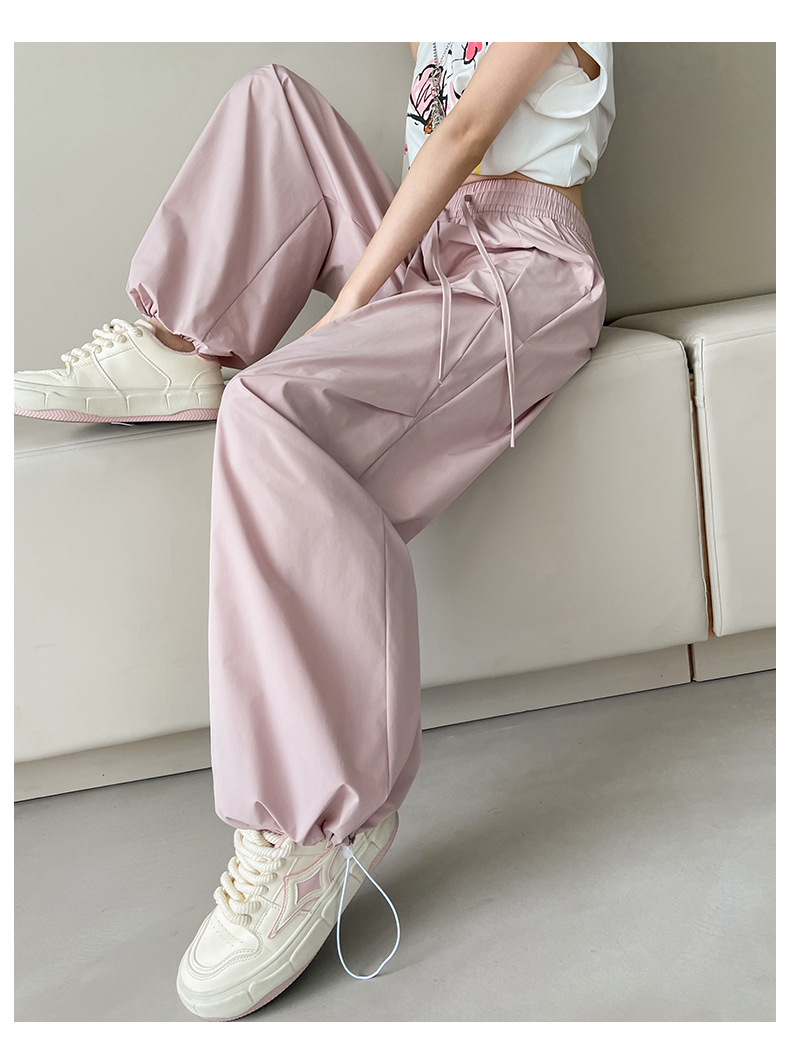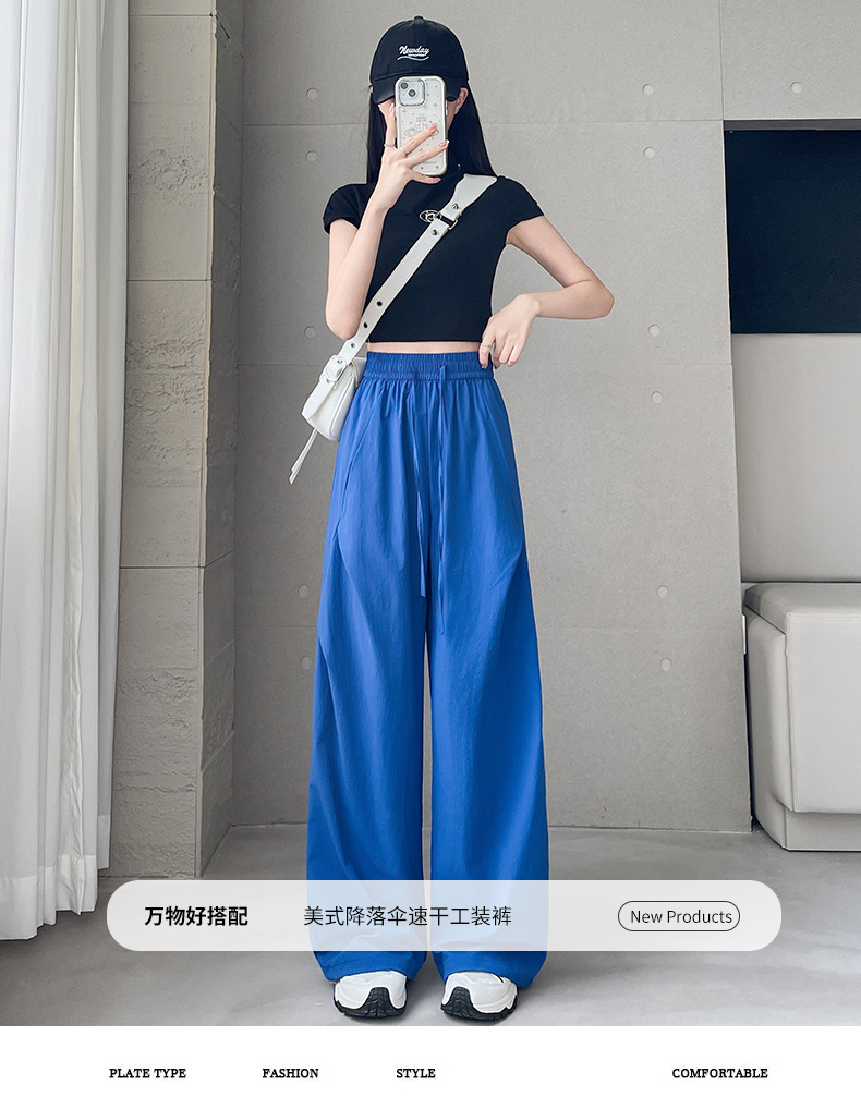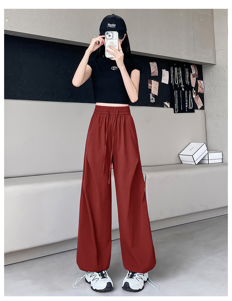 여름용 여성용 아이스 실크 속건성 충전 바지 얇은 하이 웨이스트 슬림 스트레이트 캐주얼 드로스트링 레깅스 투웨어 오버올 트렌디스토어 가기
