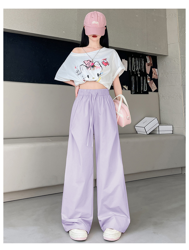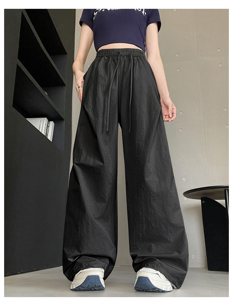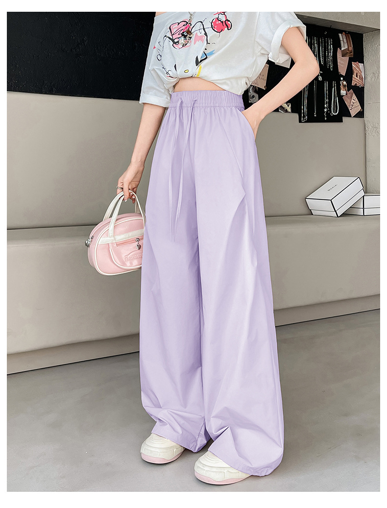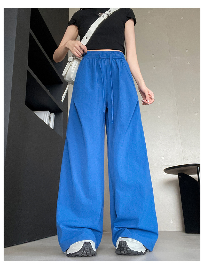 여름용 여성용 아이스 실크 속건성 충전 바지 얇은 하이 웨이스트 슬림 스트레이트 캐주얼 드로스트링 레깅스 투웨어 오버올 트렌디스토어 가기