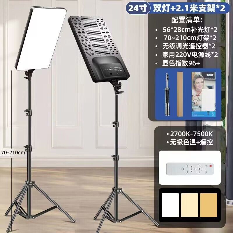 • 24인치 평면 패널 조명 2개 + 2.4m 삼각대 2개