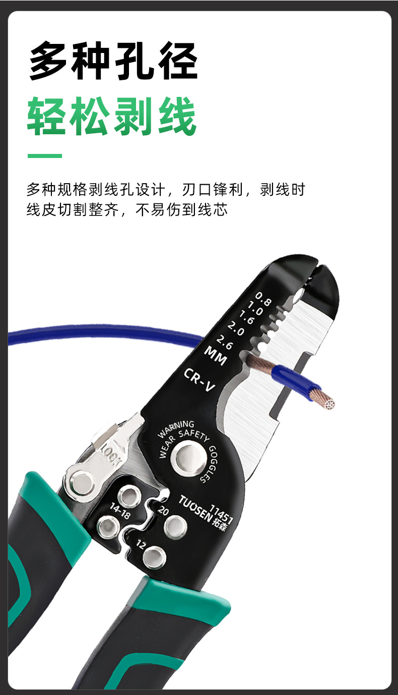 • Tuosen 곡선 핸들 와이어 스트리퍼