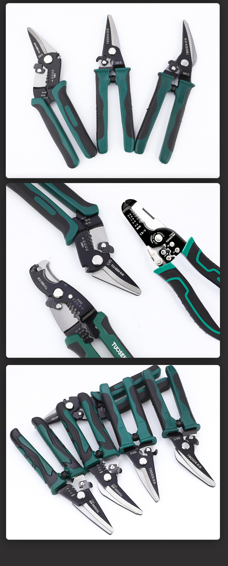 9YW Tuosen 신제품 3-in-1 7inch 와이어 스트리핑 펜치 전기 스트리핑 펜치 와이어 압착 펜치 케이블 스트리핑 펜치 다기능스토어 가기