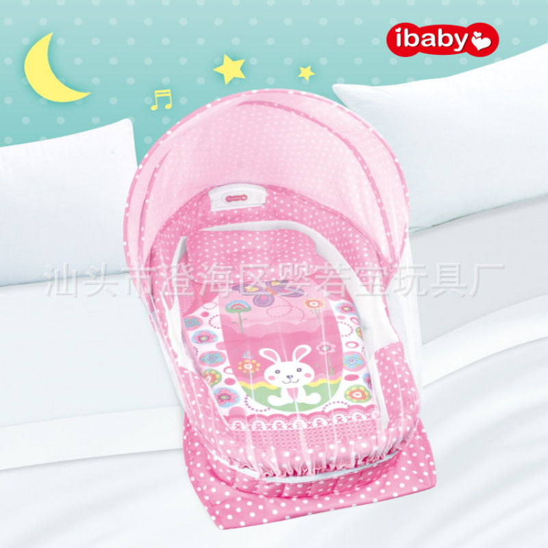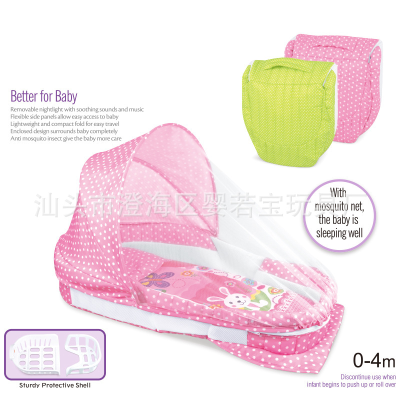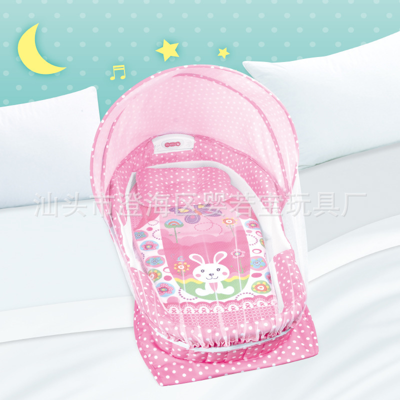 모기장이 있는 유아용 침대, 만화 패턴, 음악 및 조명, 완전히 둘러싸인 분리형 침대, 접이식 유아용 침대스토어 가기
