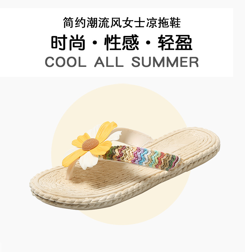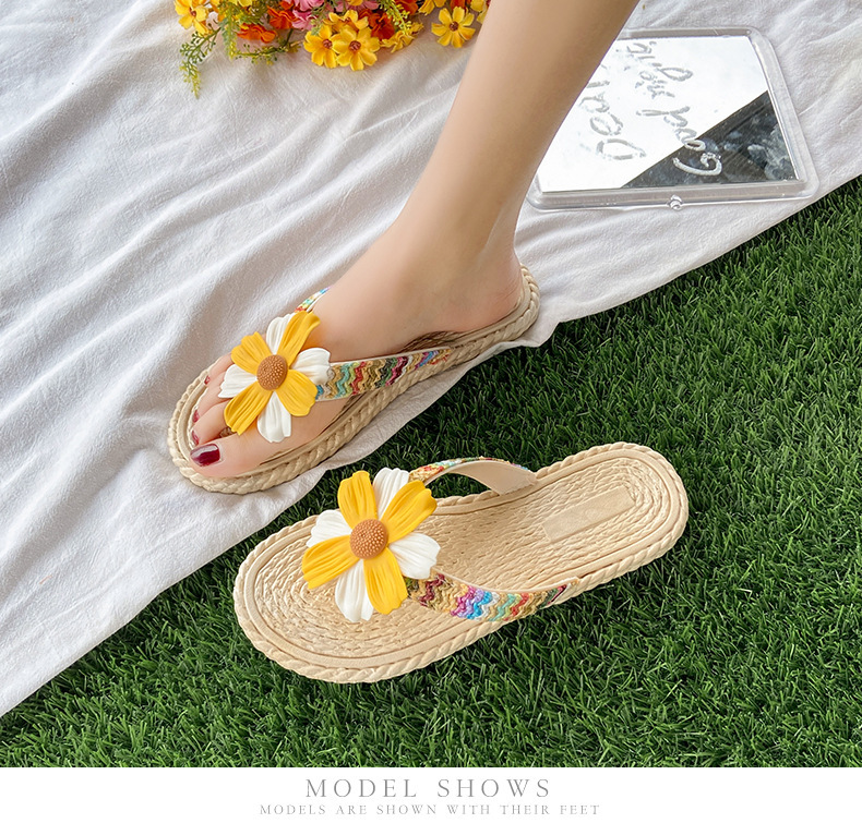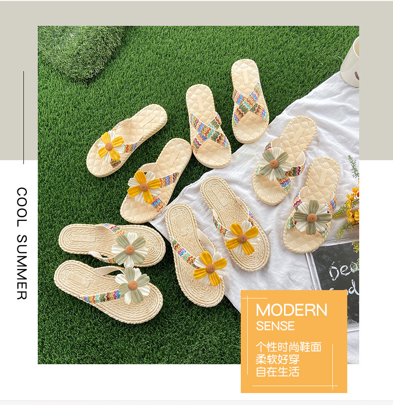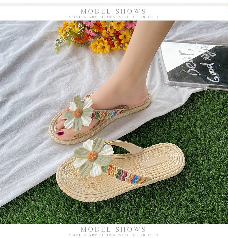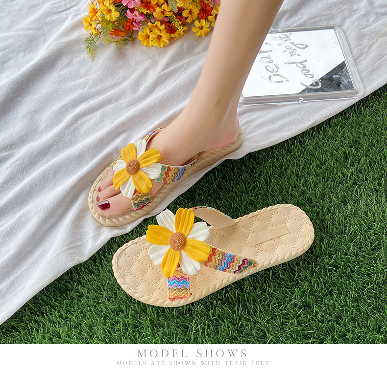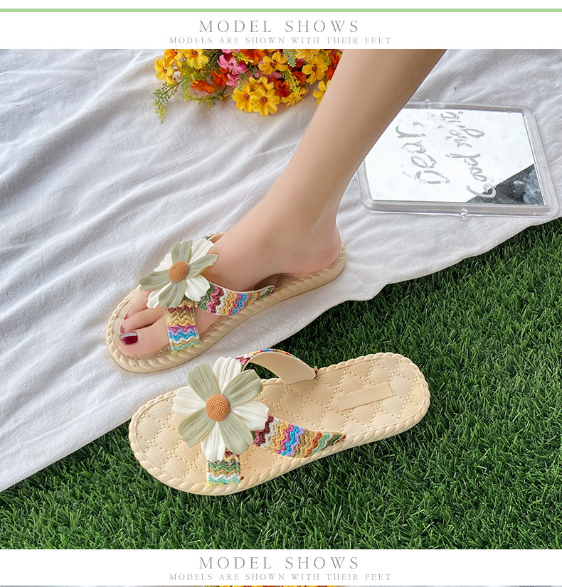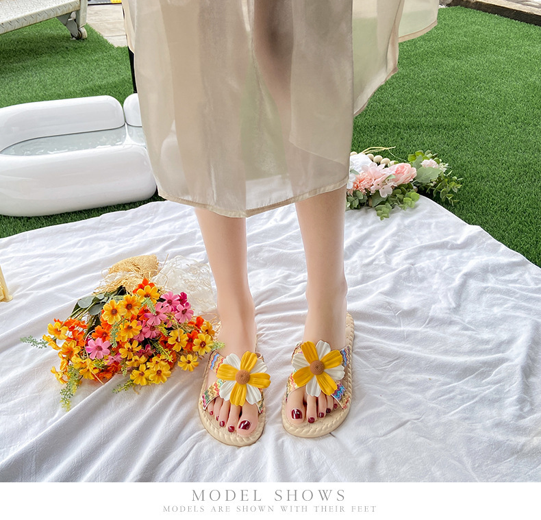 여름철 여성용 전자상거래 국경 간 샌들 및 슬리퍼, 작은 신선한 꽃 샌들 및 슬리퍼, 부드러운 밑창의 해변 신발 공급망