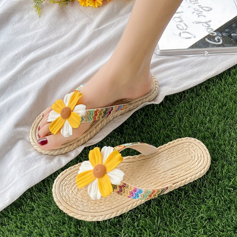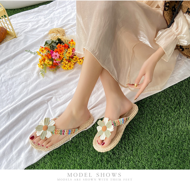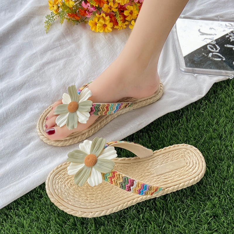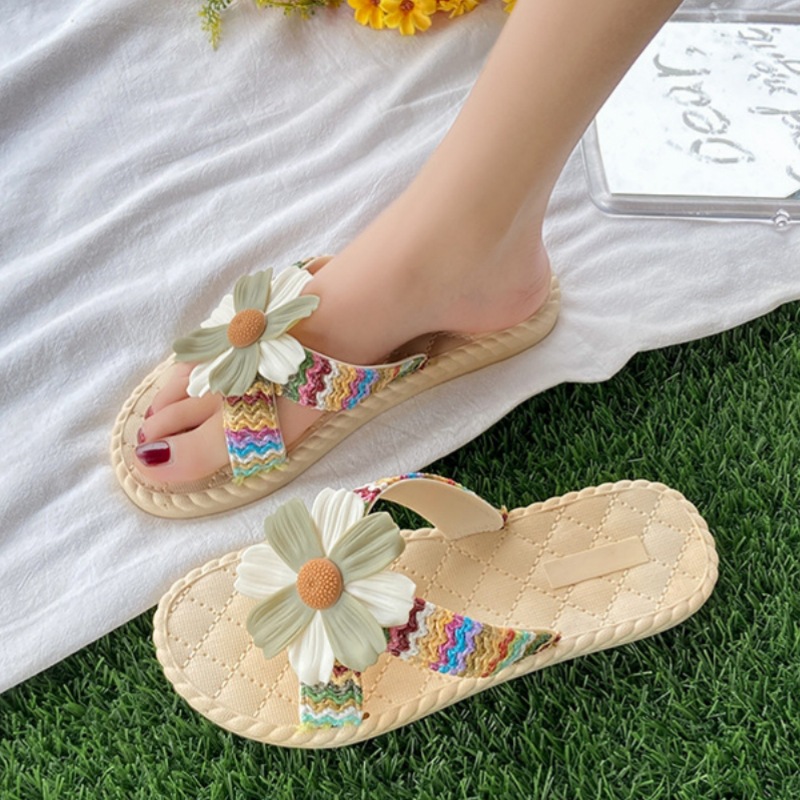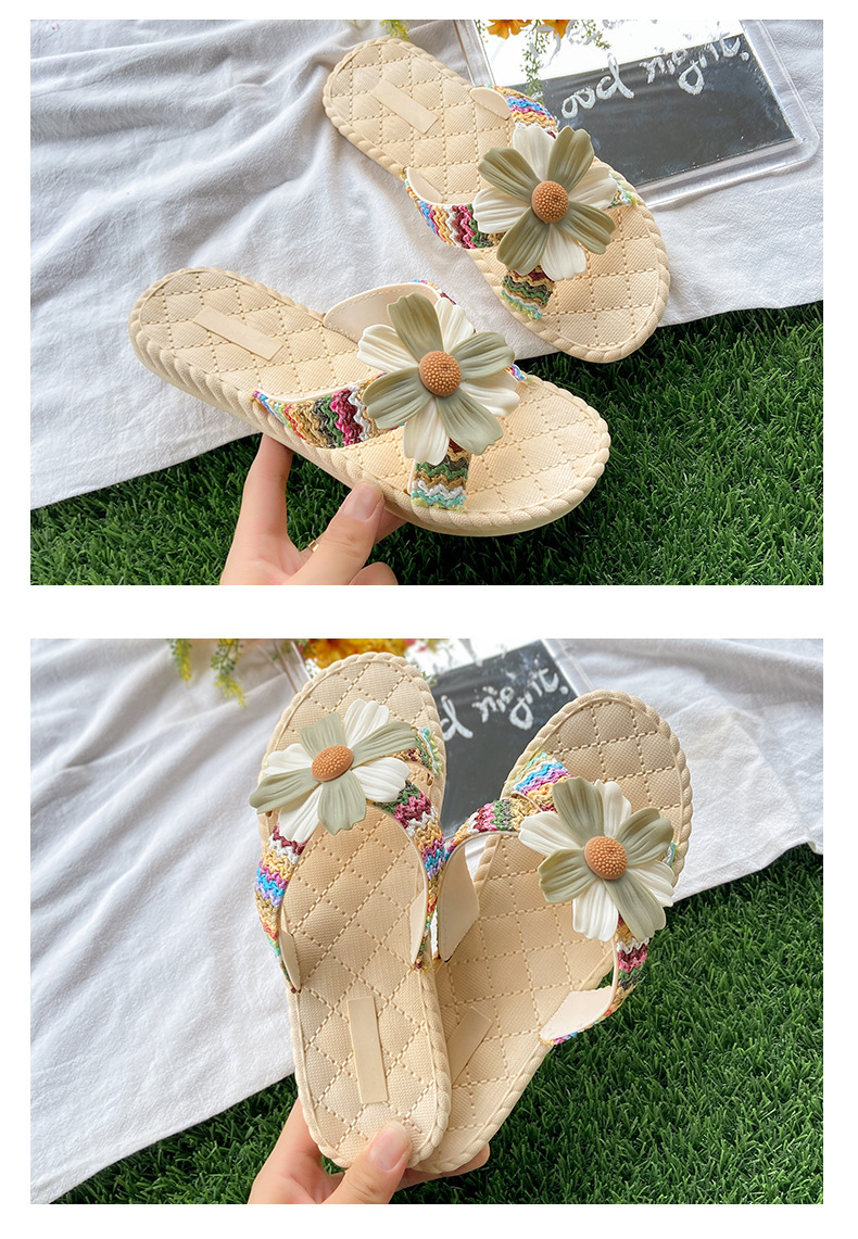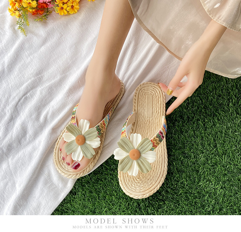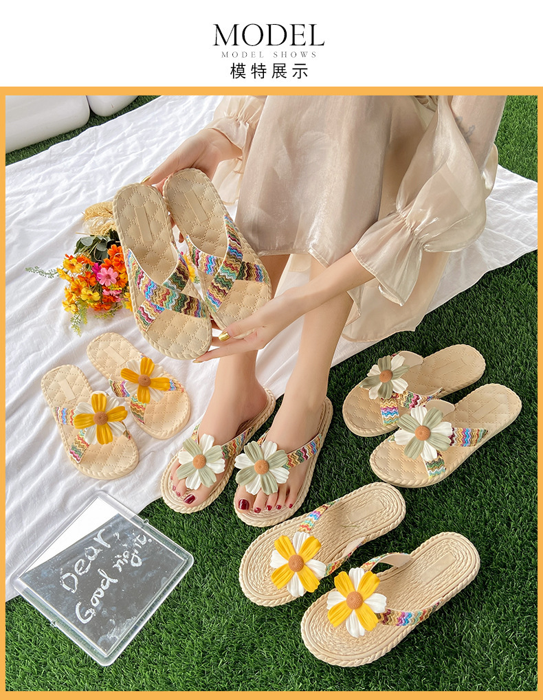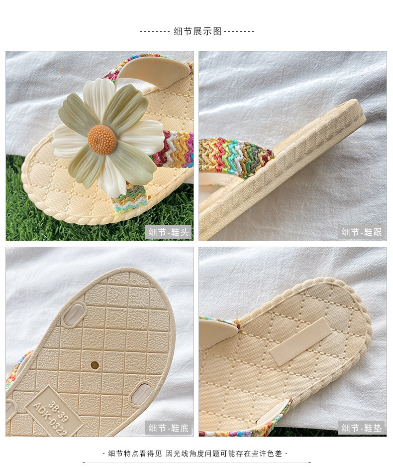 여름철 여성용 전자상거래 국경 간 샌들 및 슬리퍼, 작은 신선한 꽃 샌들 및 슬리퍼, 부드러운 밑창의 해변 신발 공급망스토어 가기