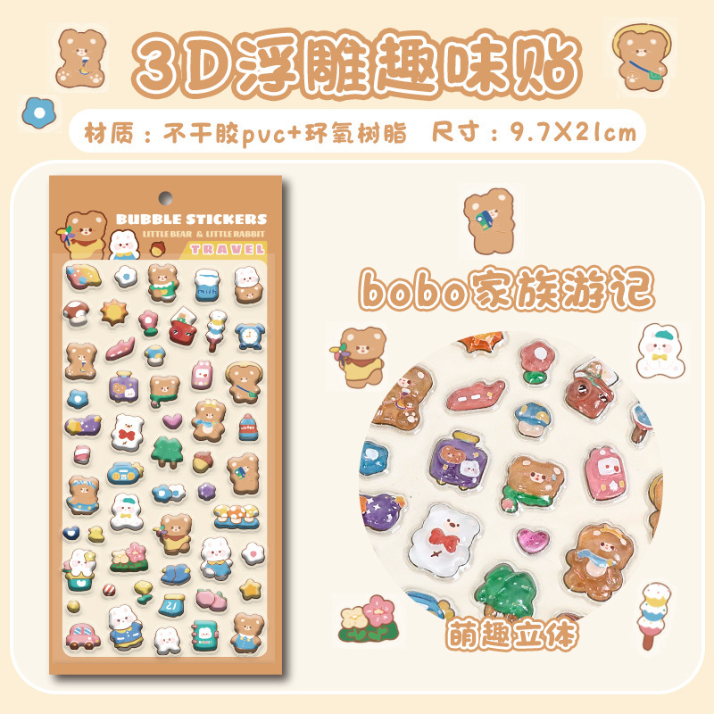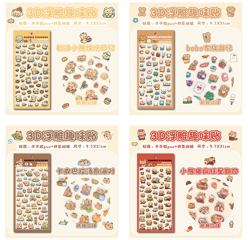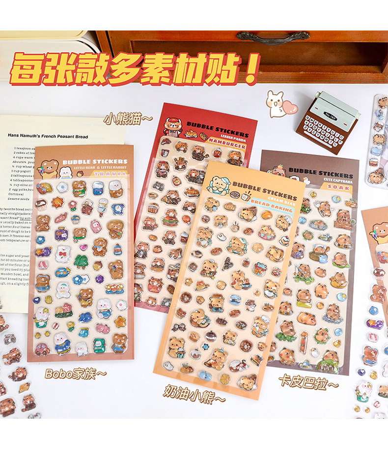 3D 입체 양각 스티커 카피바라 만화 어린이 버블 스티커 작은 스티커 동물 핸드북 Guka 스티커스토어 가기
