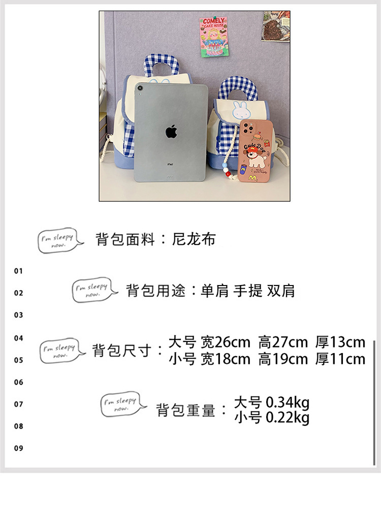 어린이 배낭 귀여운 만화 토끼 수 놓은 배낭 야외 놀이 대용량 부모-자식 가방 학생 작은 학교 가방