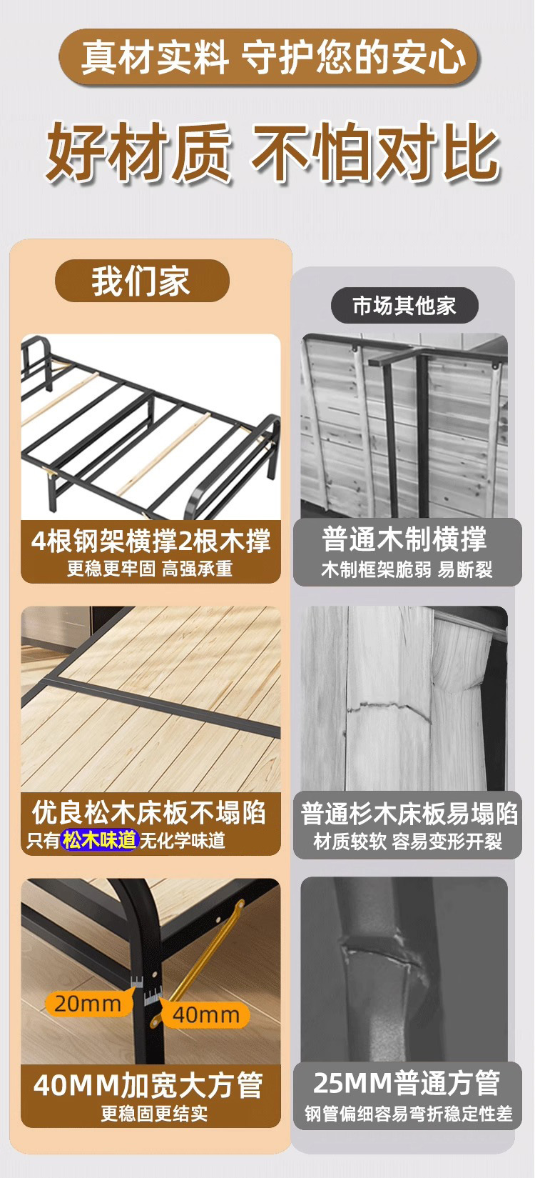 단단한 침대 가정용 싱글 임대실 근무 기숙사 접이식 침대 성인 사무실 점심 시간 간단한 강화 철제 침대