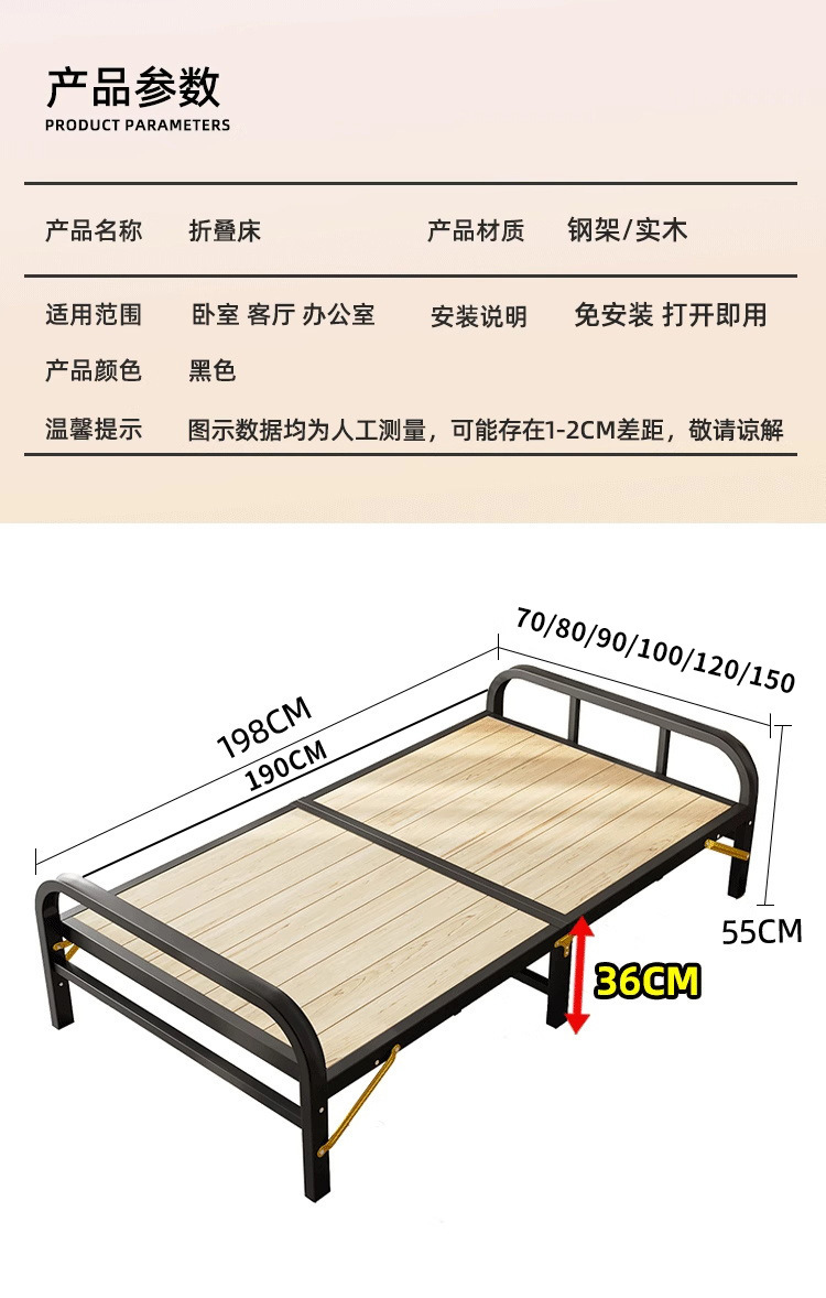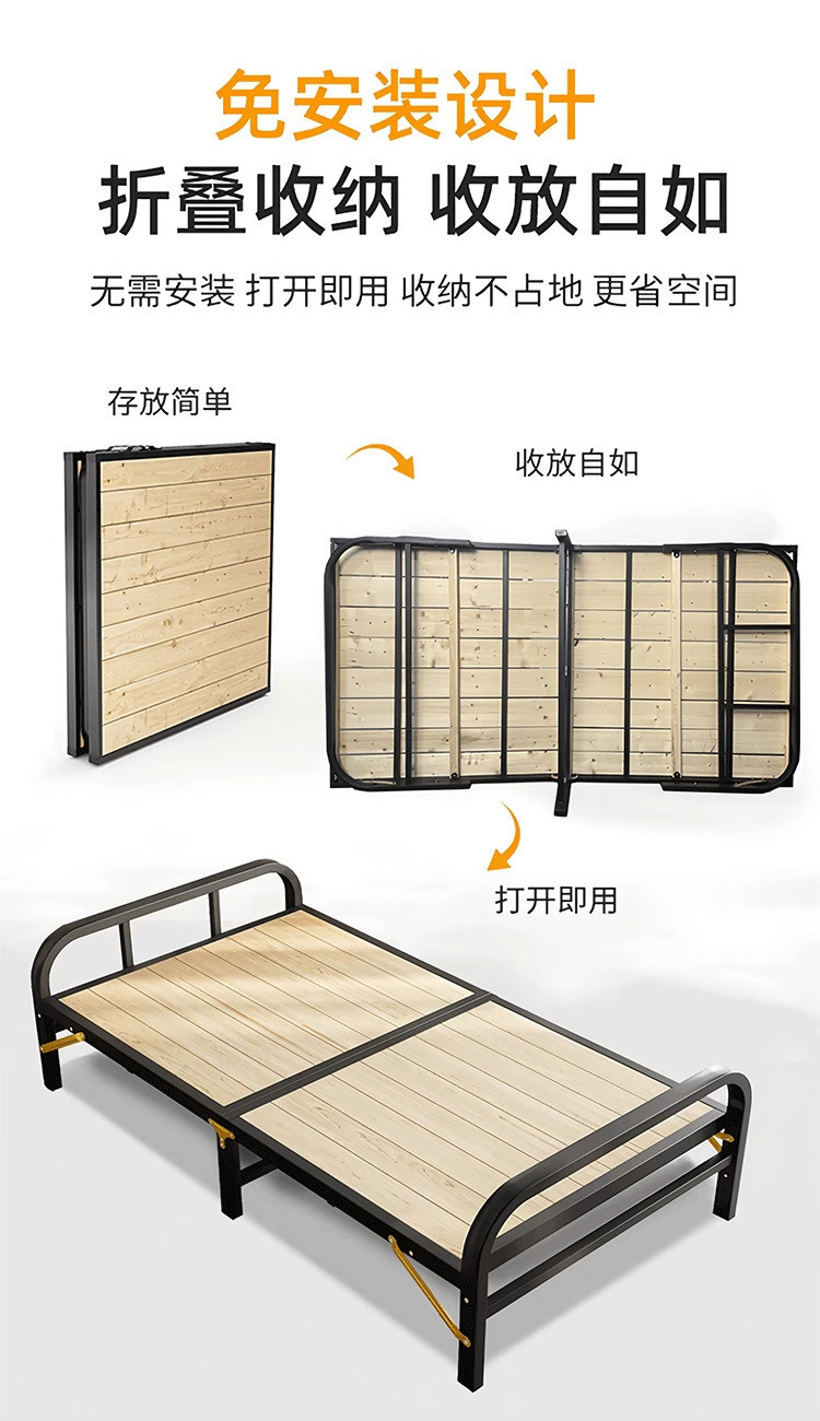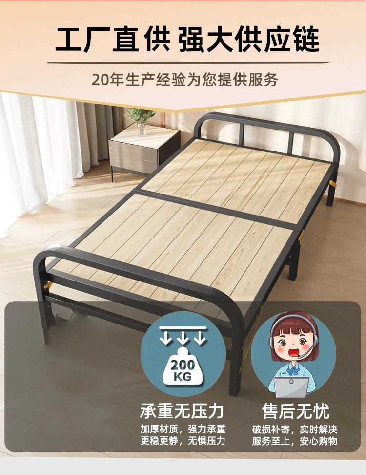 단단한 침대 가정용 싱글 임대실 근무 기숙사 접이식 침대 성인 사무실 점심 시간 간단한 강화 철제 침대스토어 가기