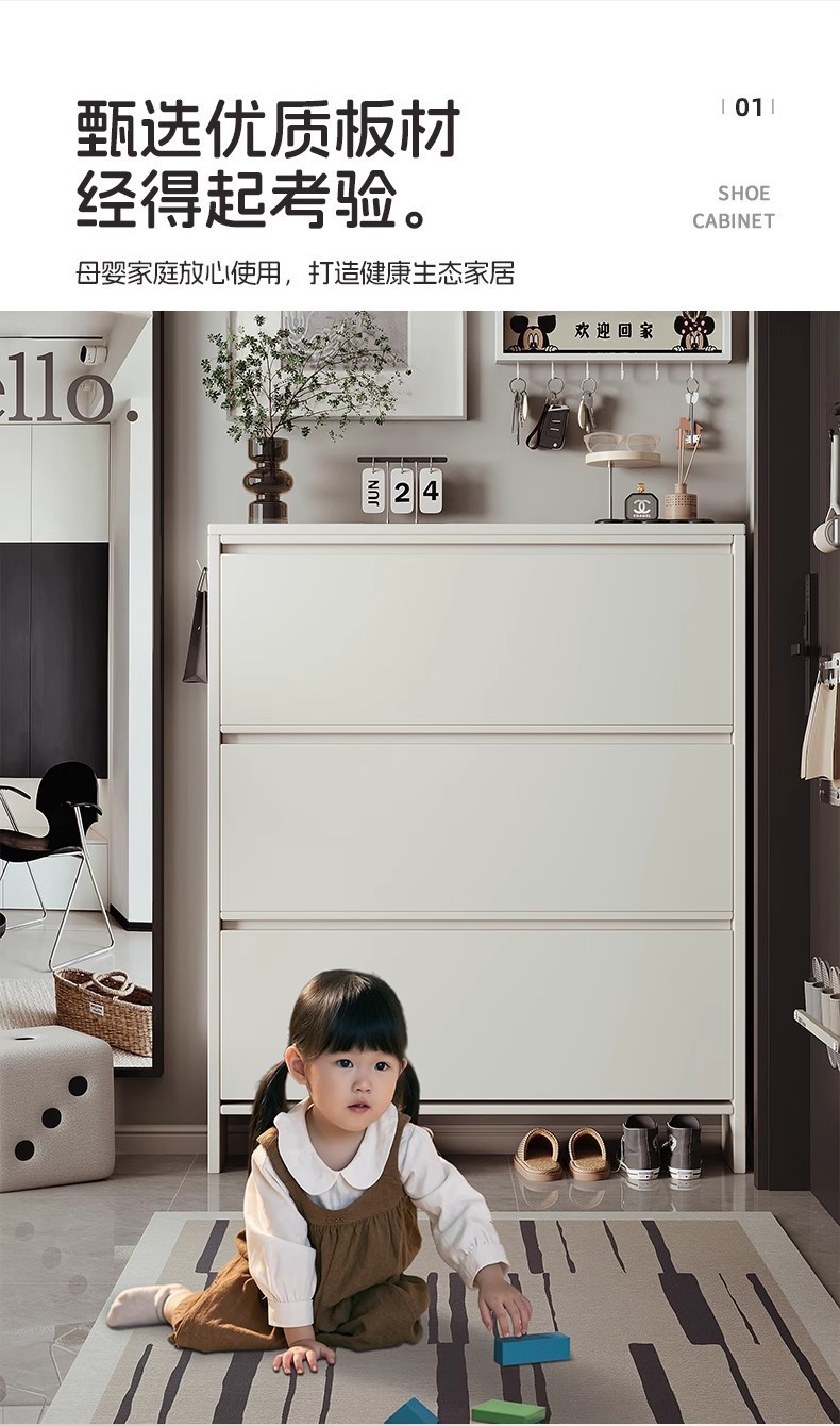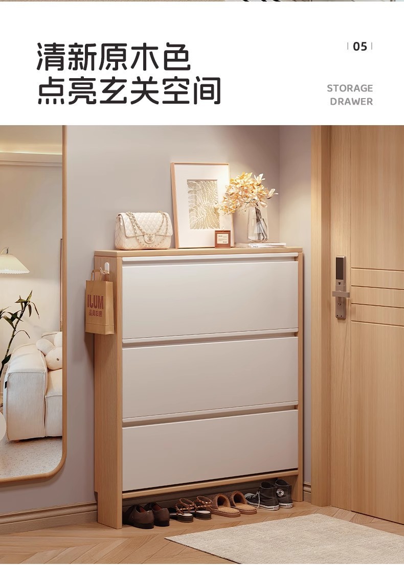 초박형 신발장 집 입구 단단한 나무 초박형 및 좁은 2025 새로운 현관 플립 버킷 17cm 복도 신발장스토어 가기