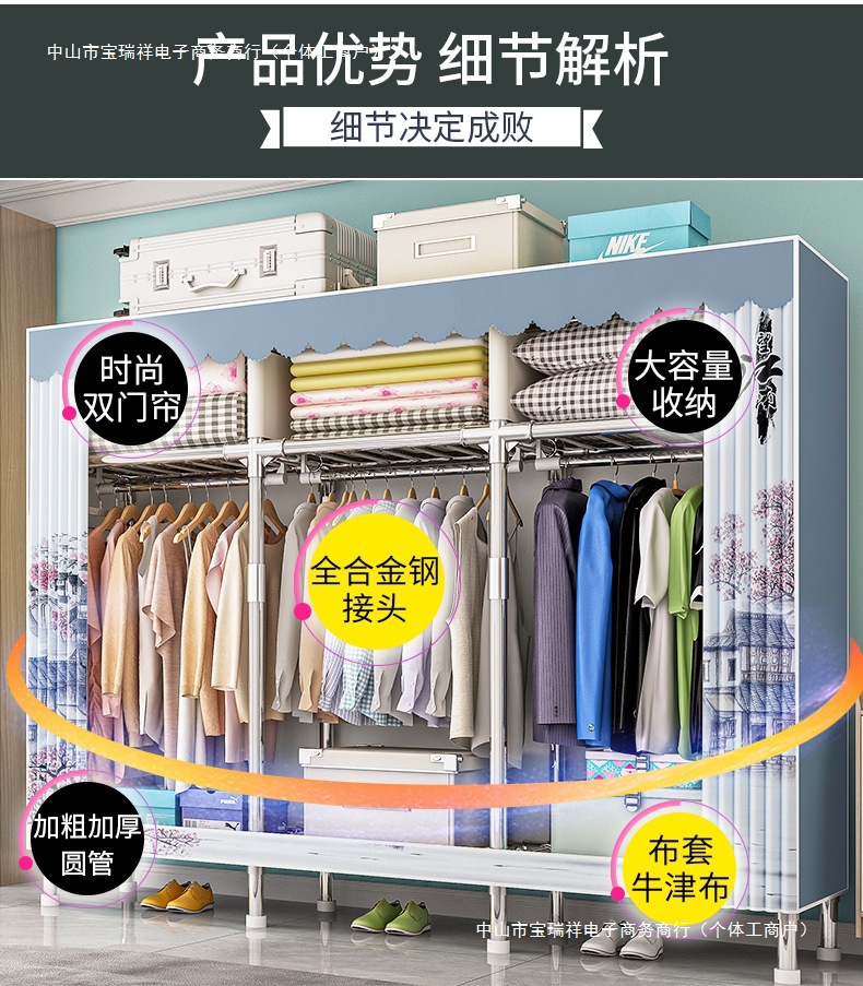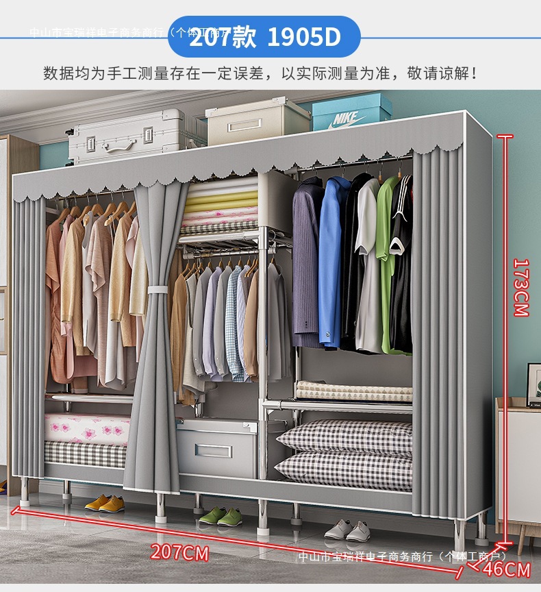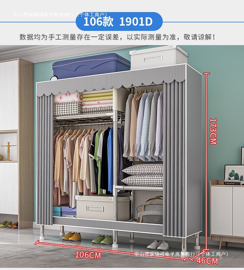 옷장, 가정용 침실, 간단한 천 옷장, 견고하고 내구성이 뛰어난 임대 주택, 소형 가정용 옷장, 조립식 보관 캐비닛