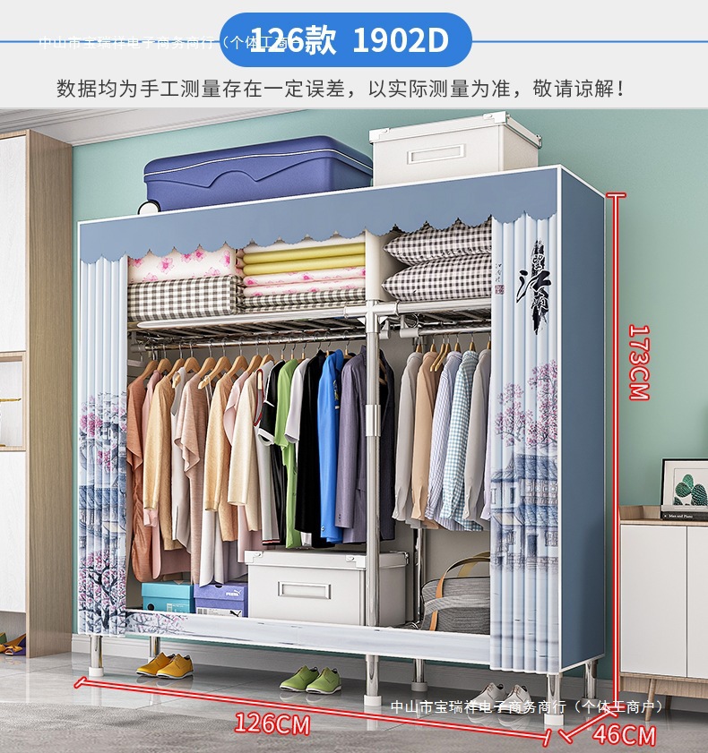 옷장, 가정용 침실, 간단한 천 옷장, 견고하고 내구성이 뛰어난 임대 주택, 소형 가정용 옷장, 조립식 보관 캐비닛스토어 가기