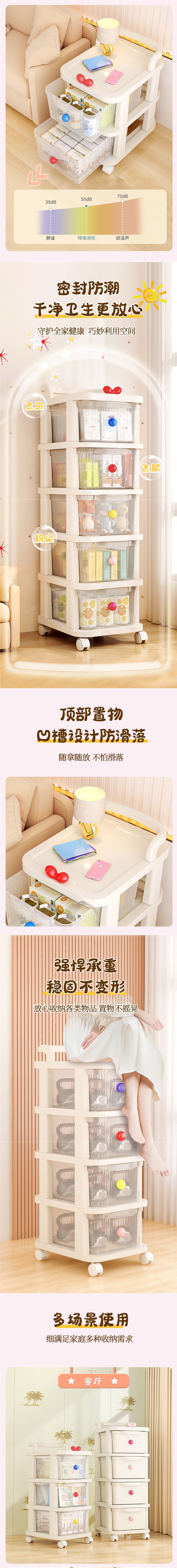 트롤리 수납 선반, 바닥 서랍형 스낵 선반, 가정용 다층 아기 수납 장난감 및 잡화 수납 캐비닛