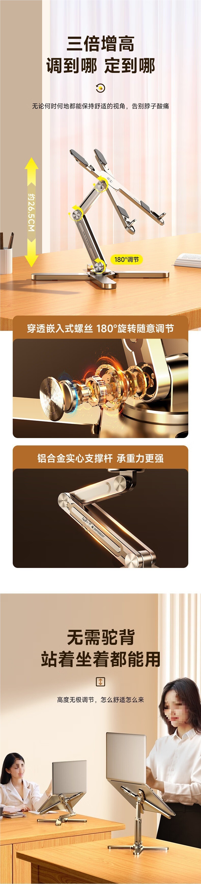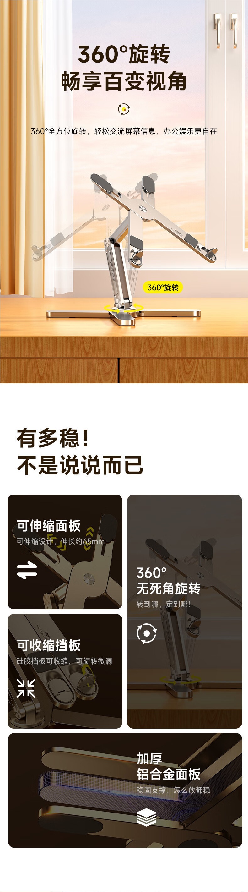 노트북 스탠드 알루미늄 합금 회전 데스크탑 높이 조절 접이식 냉각 브래킷 Haoyue Silver 업그레이드 버전 Shi Yun