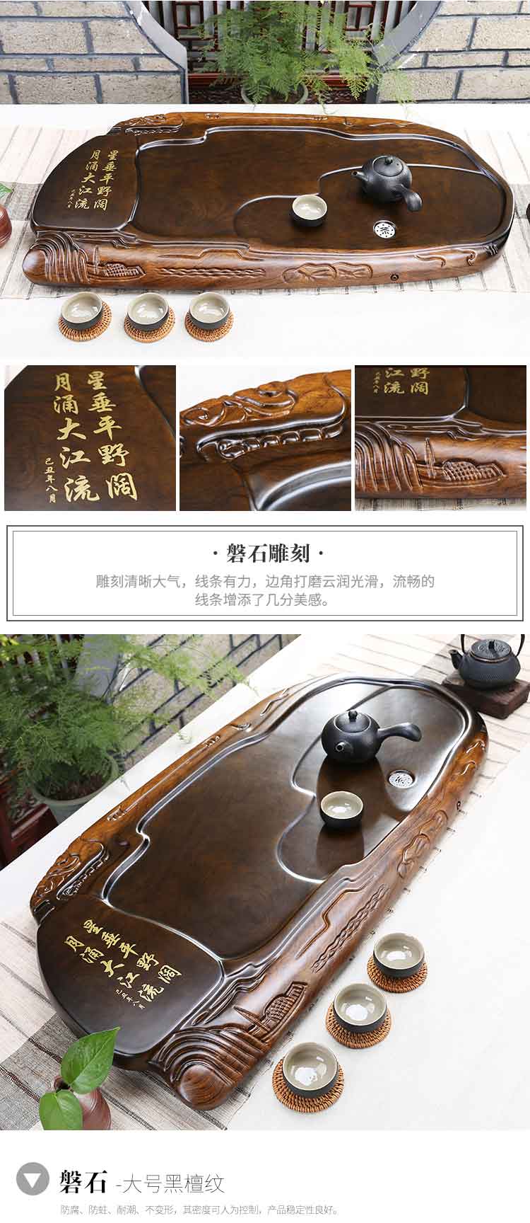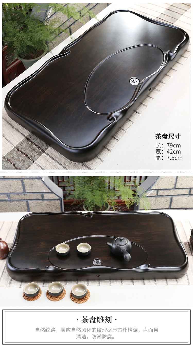 흑단 차 트레이 단단한 나무 새로운 스타일 가정용 간단한 차 바다 차 테이블 거실 차 세트 작은 통나무 차 트레이 배수스토어 가기
