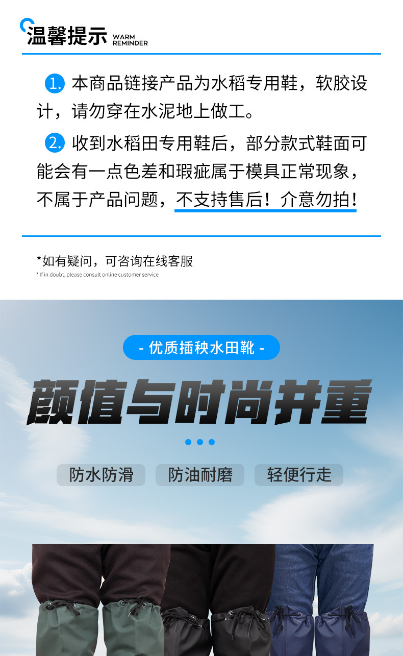 논농사용 녹색, 검정색, 파란색 남녀공용 미끄럼 방지 롱 워터팬츠, 낚시용 무릎 위까지 오는 방수바지, 논밭 작업용스토어 가기