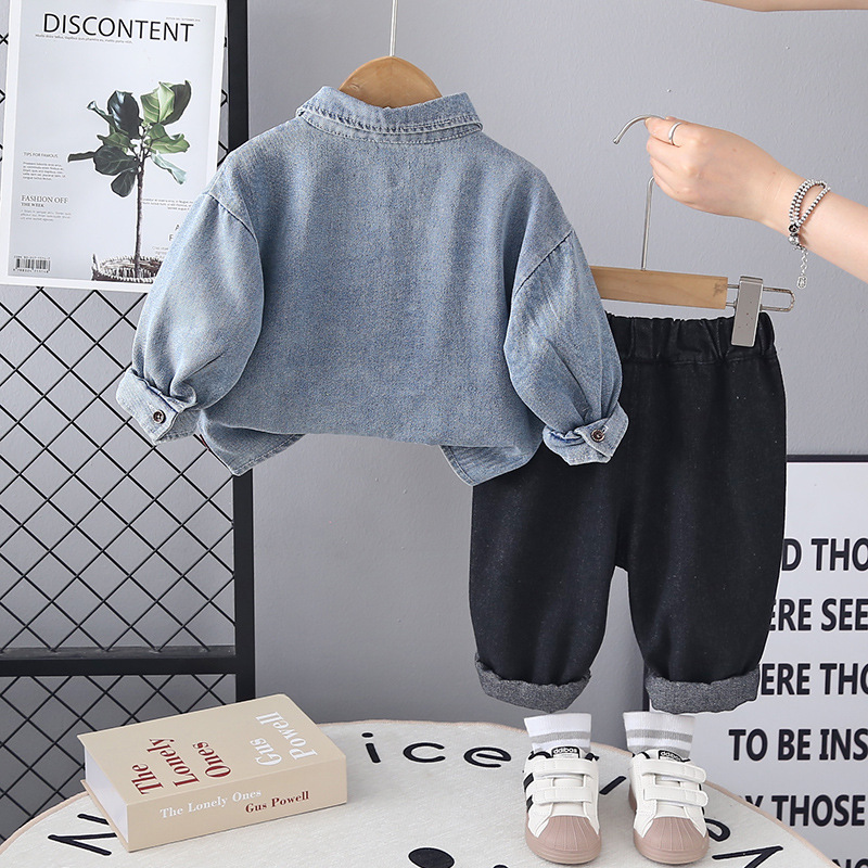 2025 새로운 한국 스타일 아동 스타일 워시 데님 재킷 베이비 긴팔 3 피스 세트 소스 공장 도매