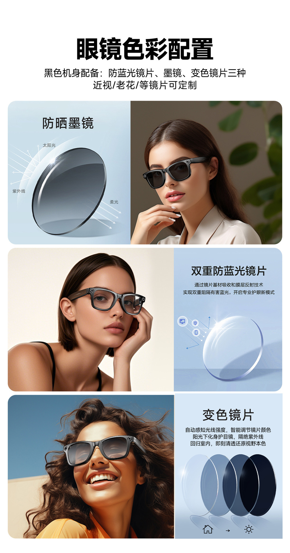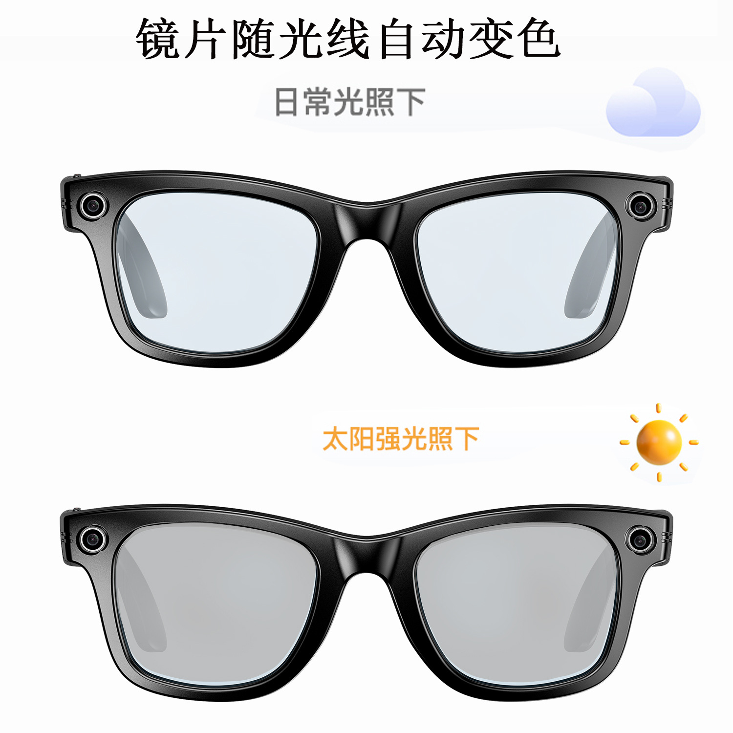 비디오 및 사진 800w 안경 AI 번역 손떨림 방지 카메라(촬영 포함) 스마트 안경 카메라 HD