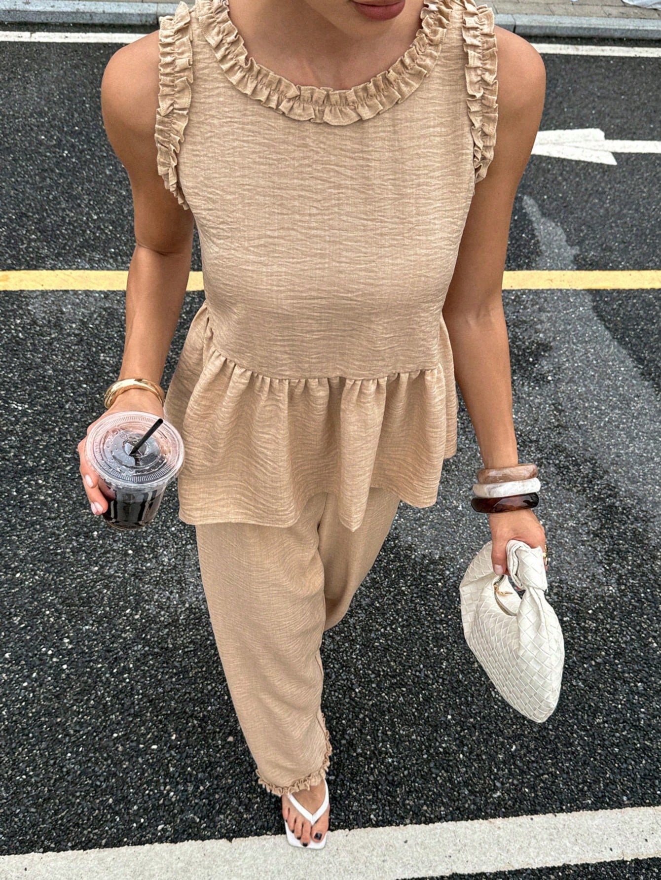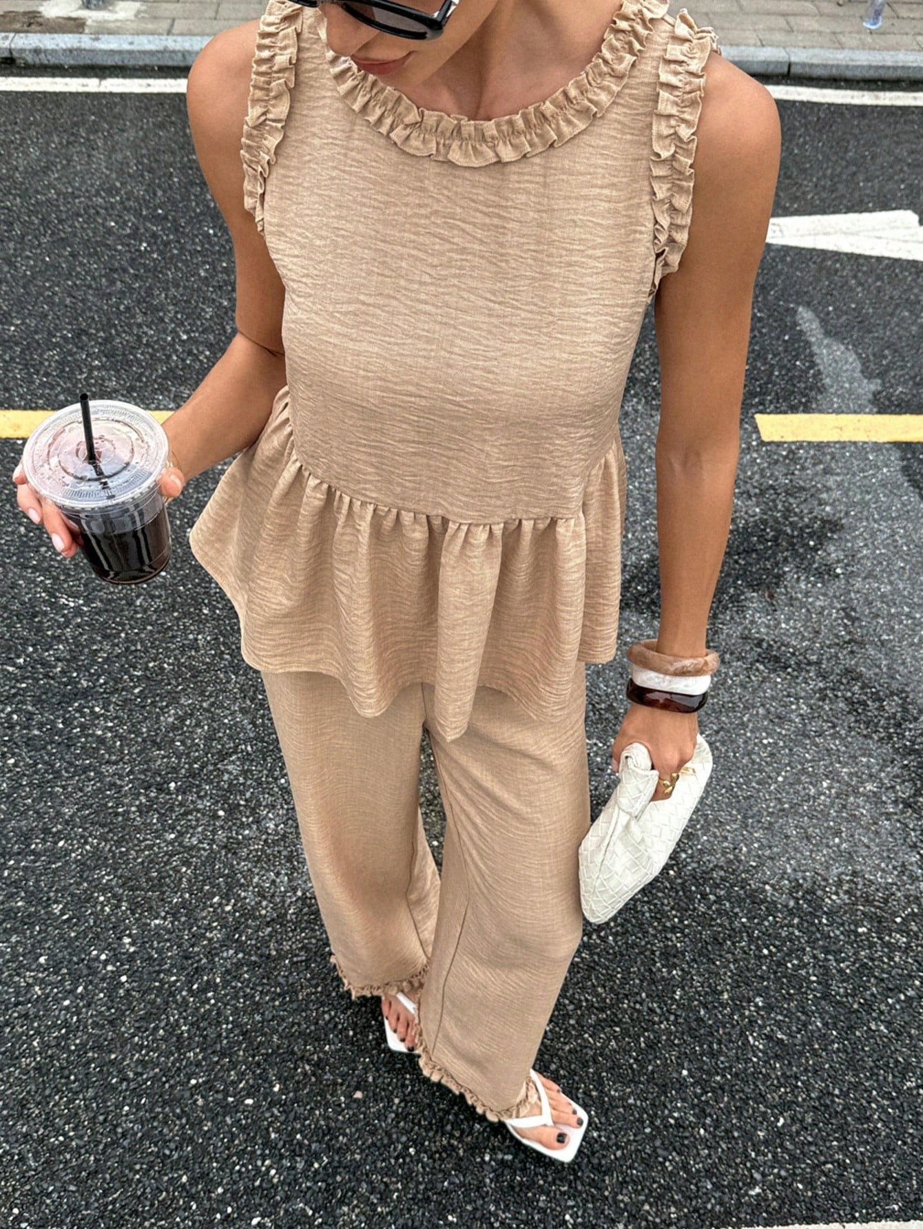 Siren Gaze 여성용 라운드 넥 프릴 셔츠와 루즈 캐주얼 바지 투피스 세트 여성용 홈웨어