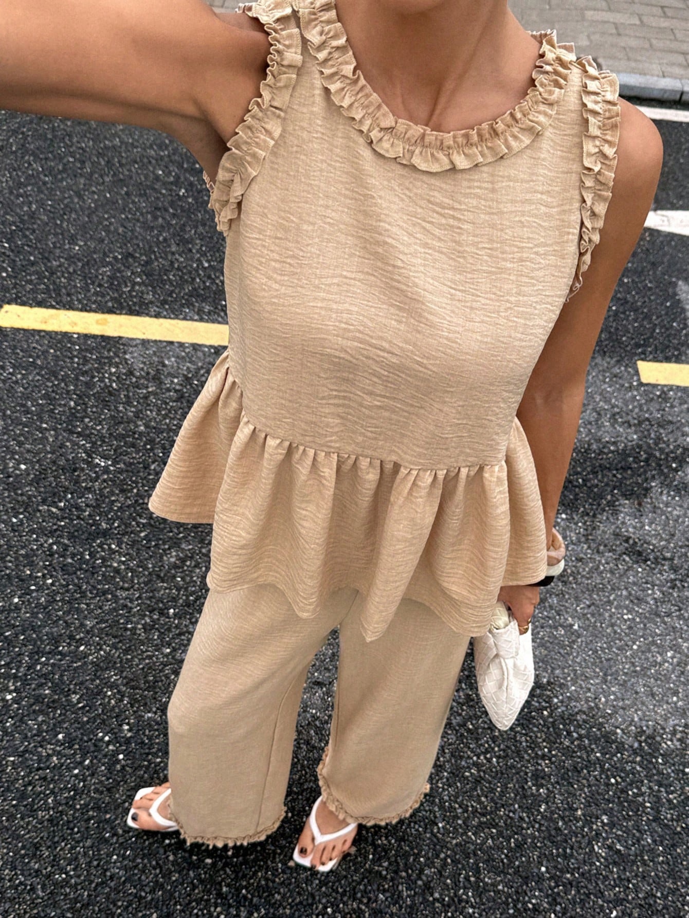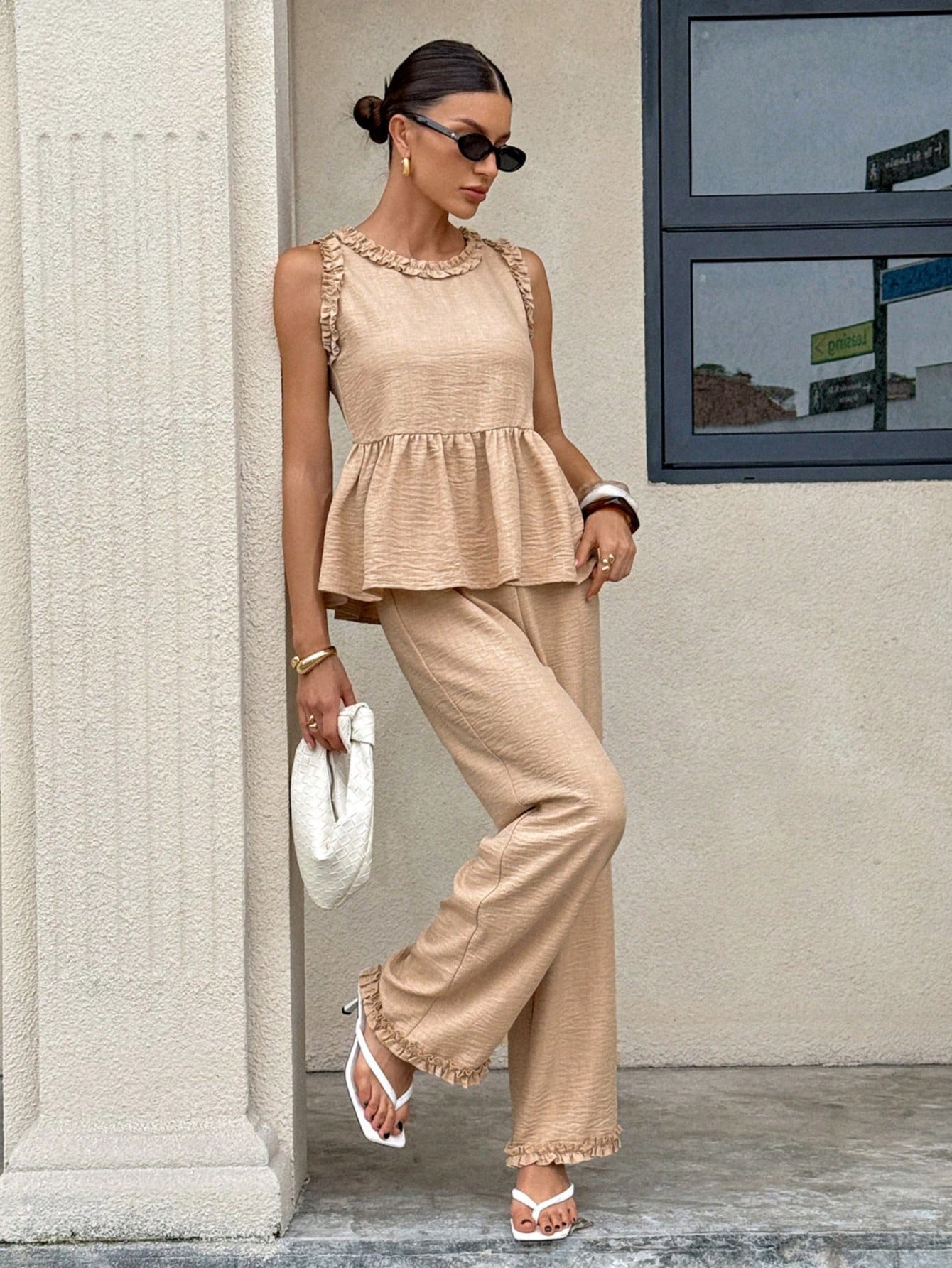 Siren Gaze 여성용 라운드 넥 프릴 셔츠와 루즈 캐주얼 바지 투피스 세트 여성용 홈웨어스토어 가기