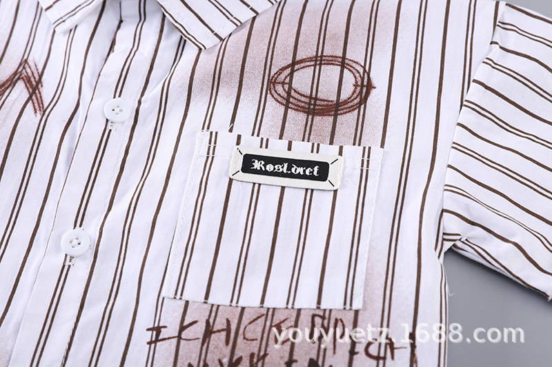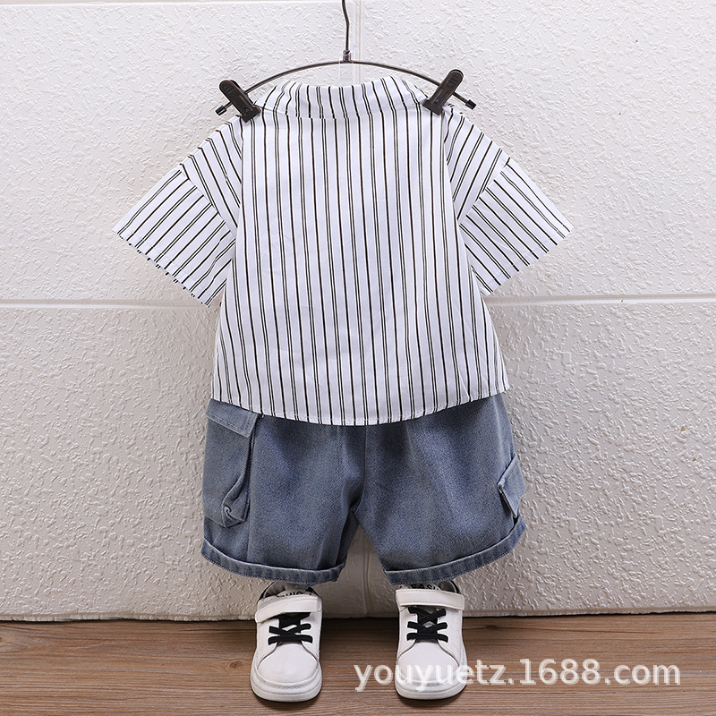 소년 여름 정장 새로운 스타일 아기 줄무늬 반팔 셔츠 여름 반바지 3 피스 세트 잘 생긴 아동복스토어 가기