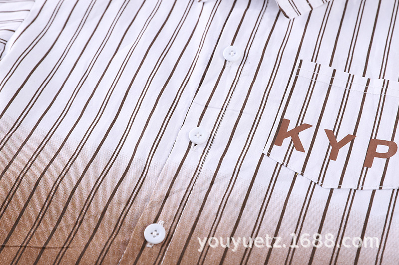 • KYP 스트라이프 그라데이션 컬러 반팔 쓰리피스 커피 컬러 세트