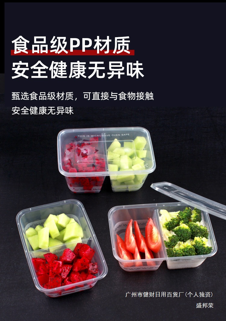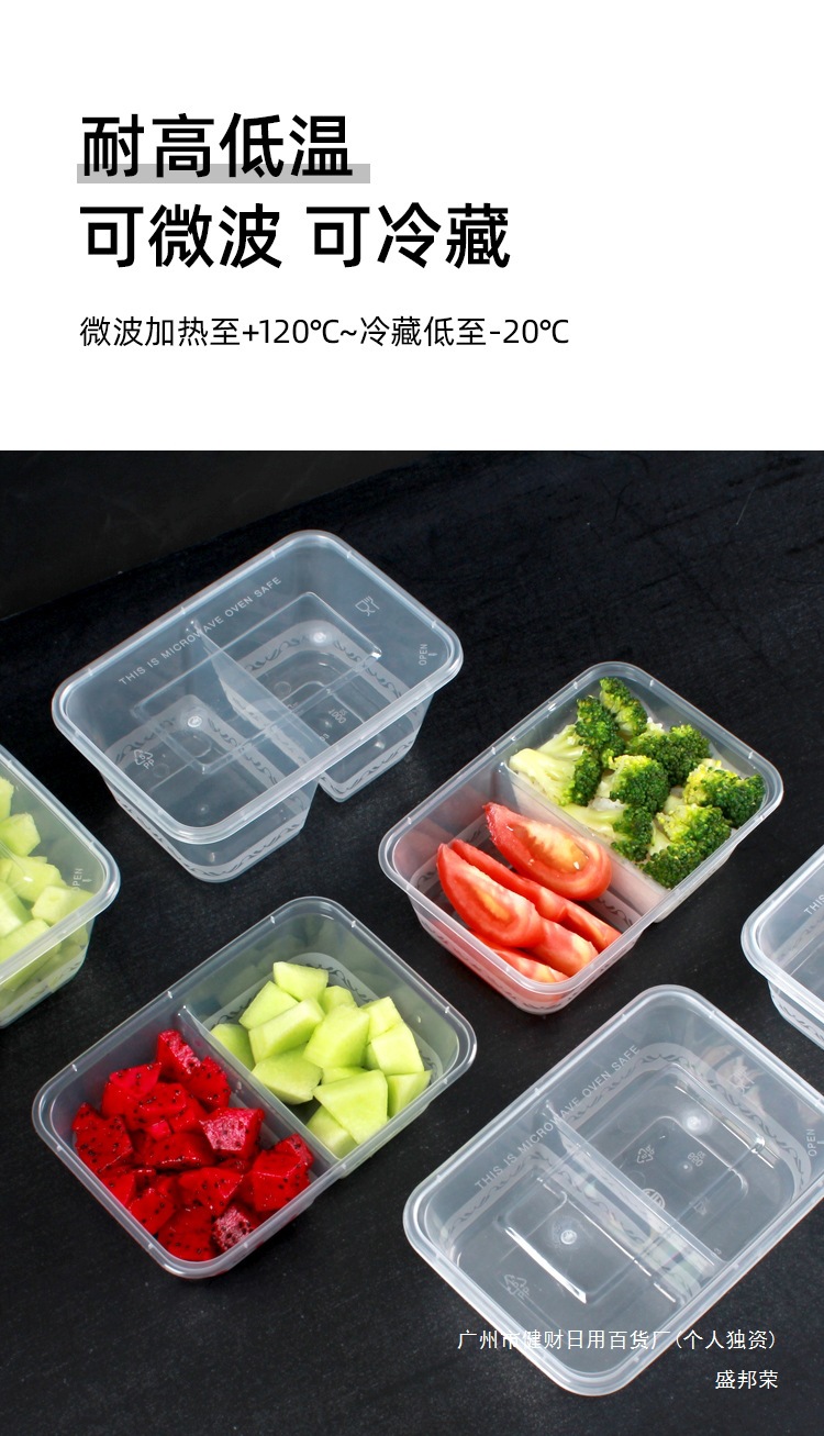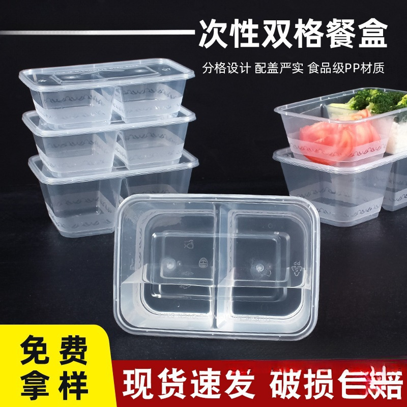 전자레인지 사용이 가능한 칸막이가 있는 일회용 도시락통, 2칸 포장박스, 직사각형 칸막이 도시락통, 식품등급 가정용스토어 가기