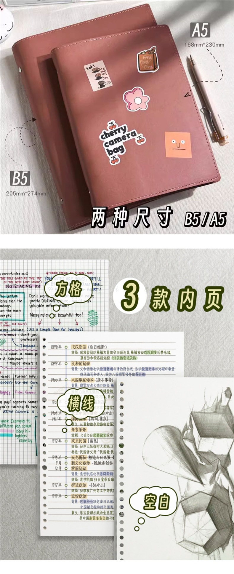 루스리프 노트 b5 루스리프 노트 탈착식 버클 빈 노트 대학원 입시 대학생 a5 고급스러운 부드러운 가죽