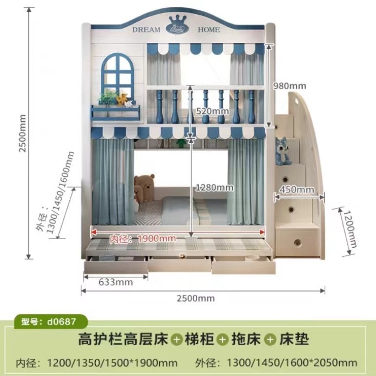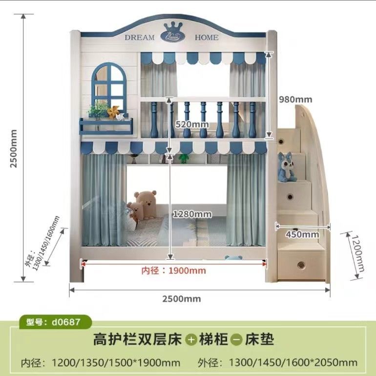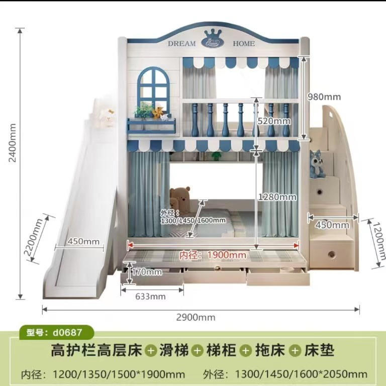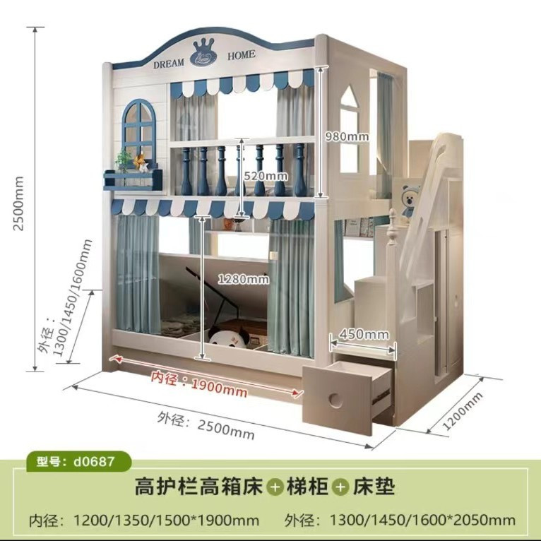 • 침대 + 견인 침대 + 사다리 캐비닛 + 매트리스 2개