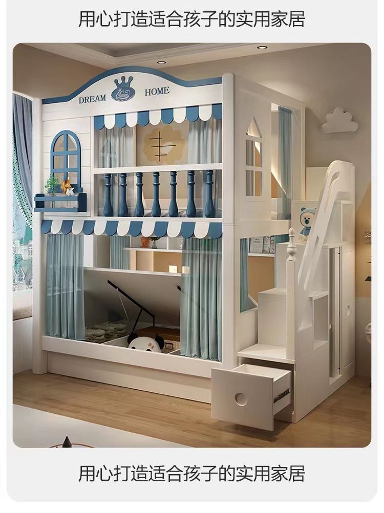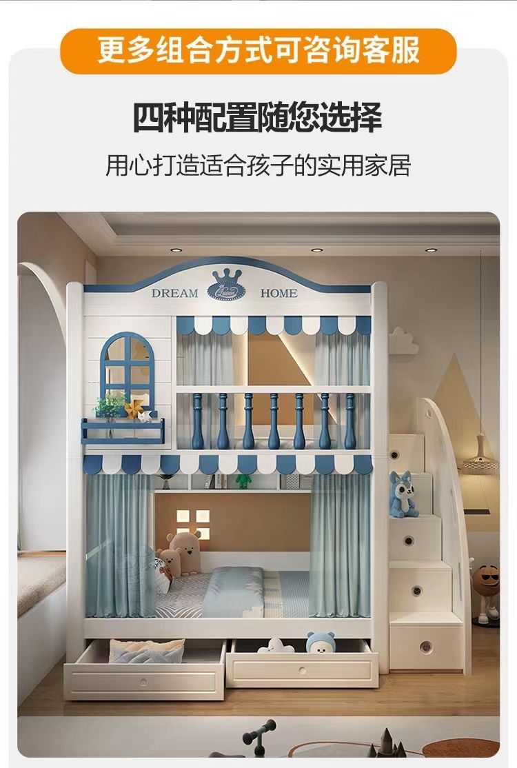 어린이 이층 침대, 높은 가드레일, 이층 침대, 소년 소녀 가정용 침대, 슬라이드가 있는 이층 침대, 조합 침대스토어 가기