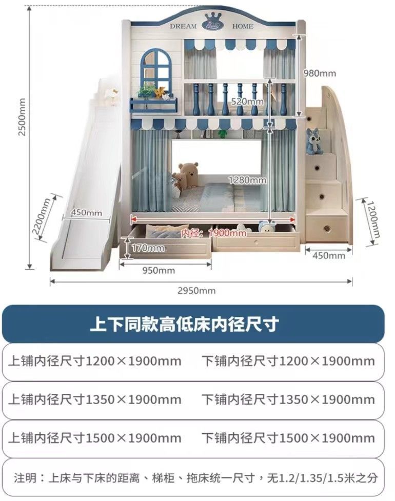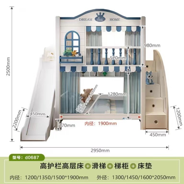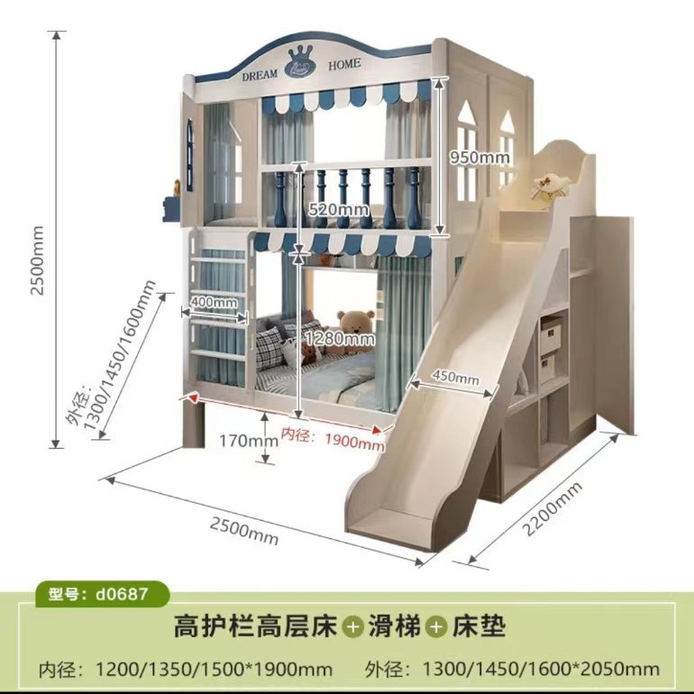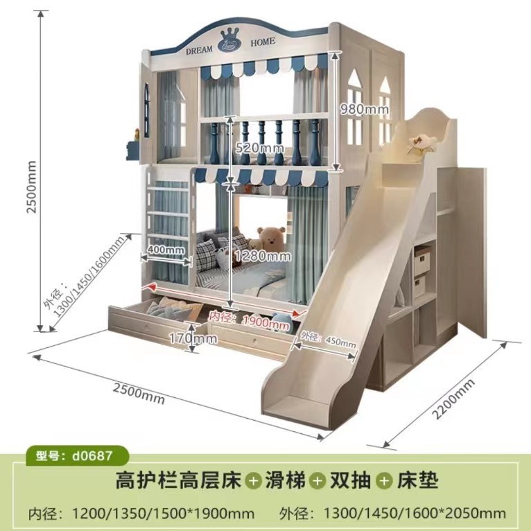 • 침대 + 견인 침대 + 사다리 캐비닛 + 슬라이드 + 매트리스 2개