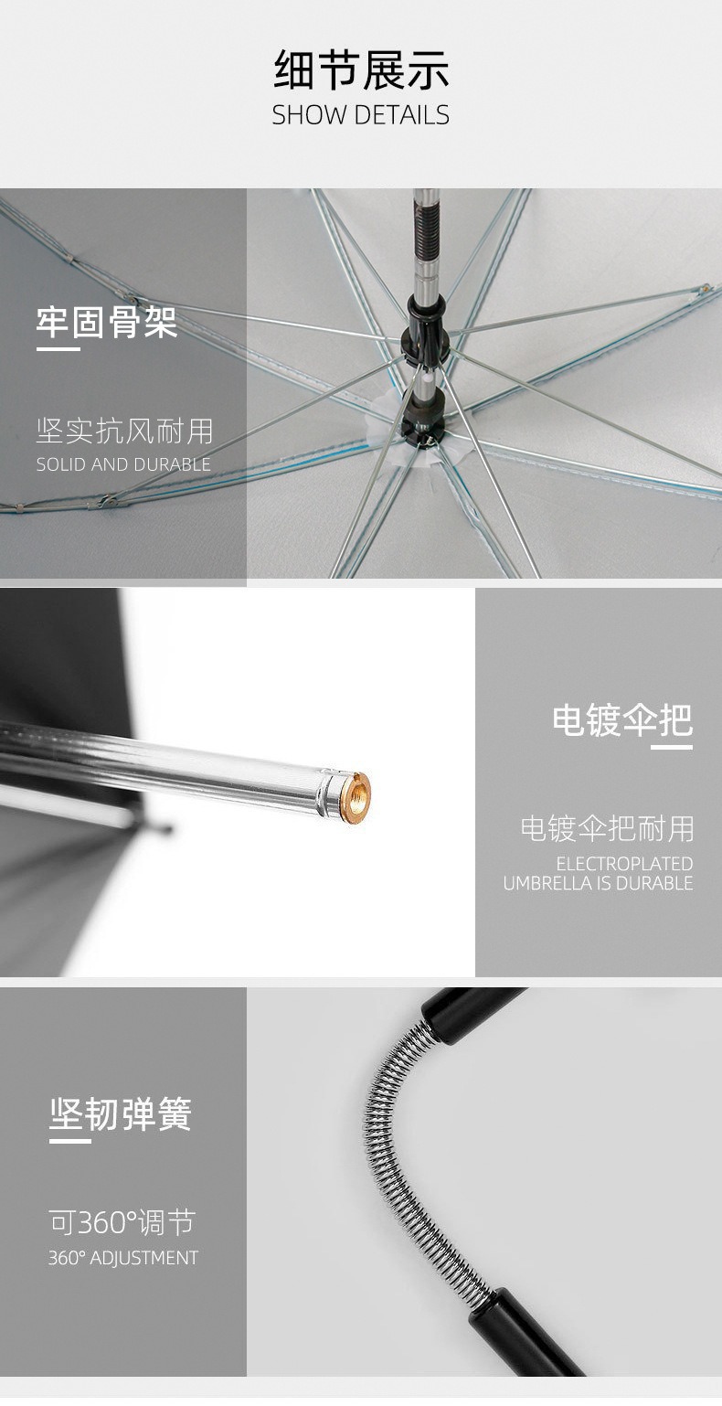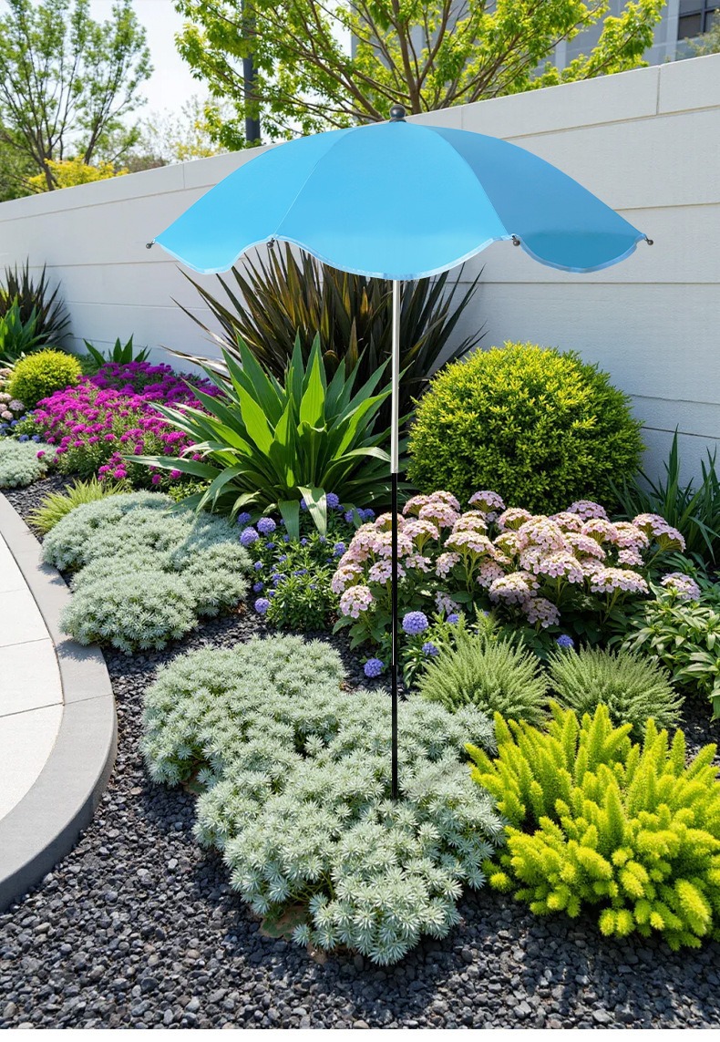엄선된 다기능 야외 정원 식물 화분용 지상 우산, 필수용 차양 우산, 실버 플라스틱 비 또는 빛 우산