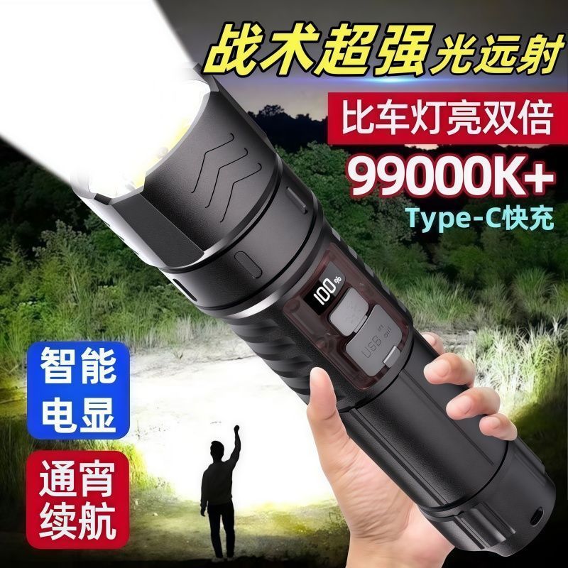 손전등 강한 빛 휴대용 충전식 매우 밝은 야외 줌 장거리 스포트라이트 매우 긴 수명 LED 레이저 빛