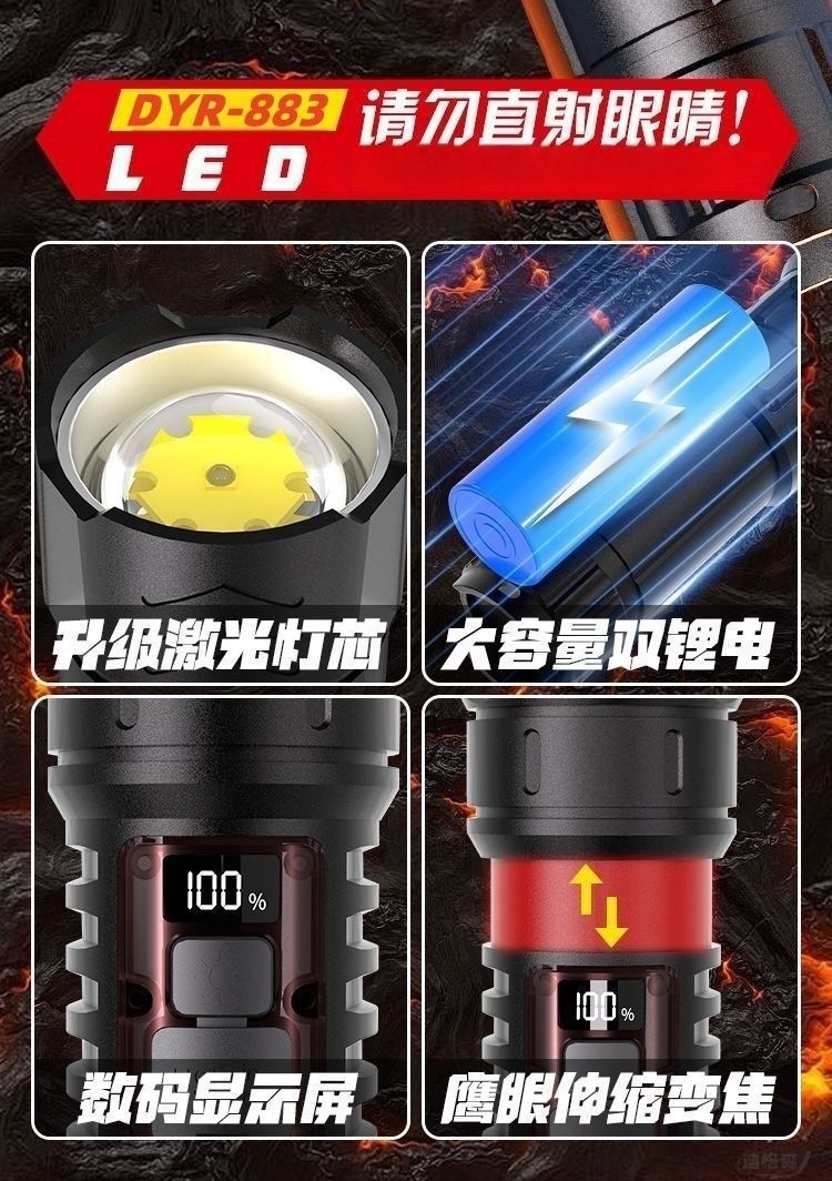 손전등 강한 빛 휴대용 충전식 매우 밝은 야외 줌 장거리 스포트라이트 매우 긴 수명 LED 레이저 빛스토어 가기