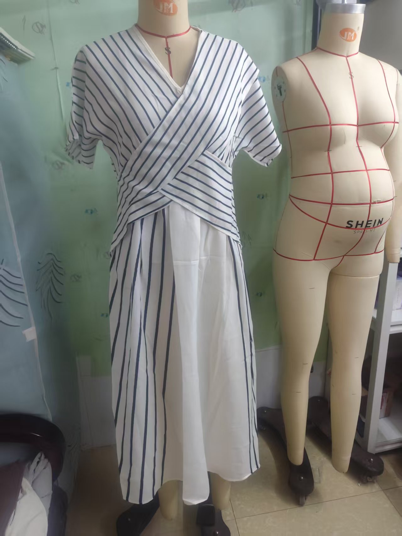 2025 아마존 유럽 및 미국 독립 사이트 크로스보더 여성용 루즈 스트라이프 프린트 원피스스토어 가기
