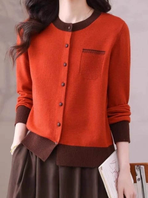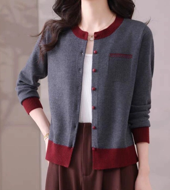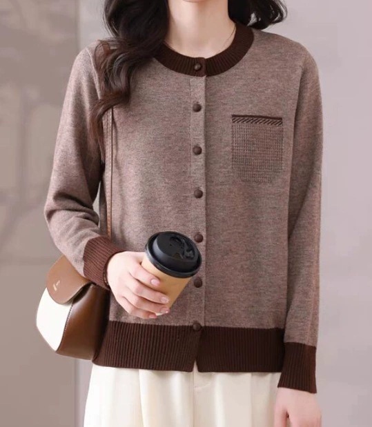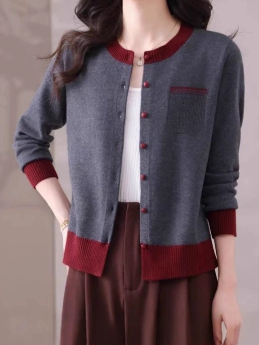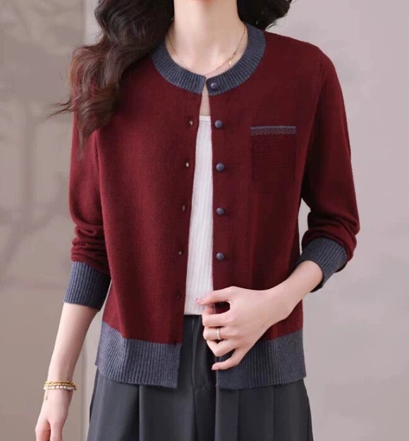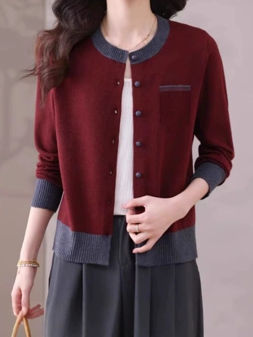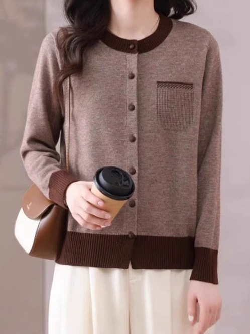 2025 봄 신작 니트 가디건 여성 아우터 탑 패셔너블 라운드 넥 스웨터 여성 코트 봄, 가을스토어 가기