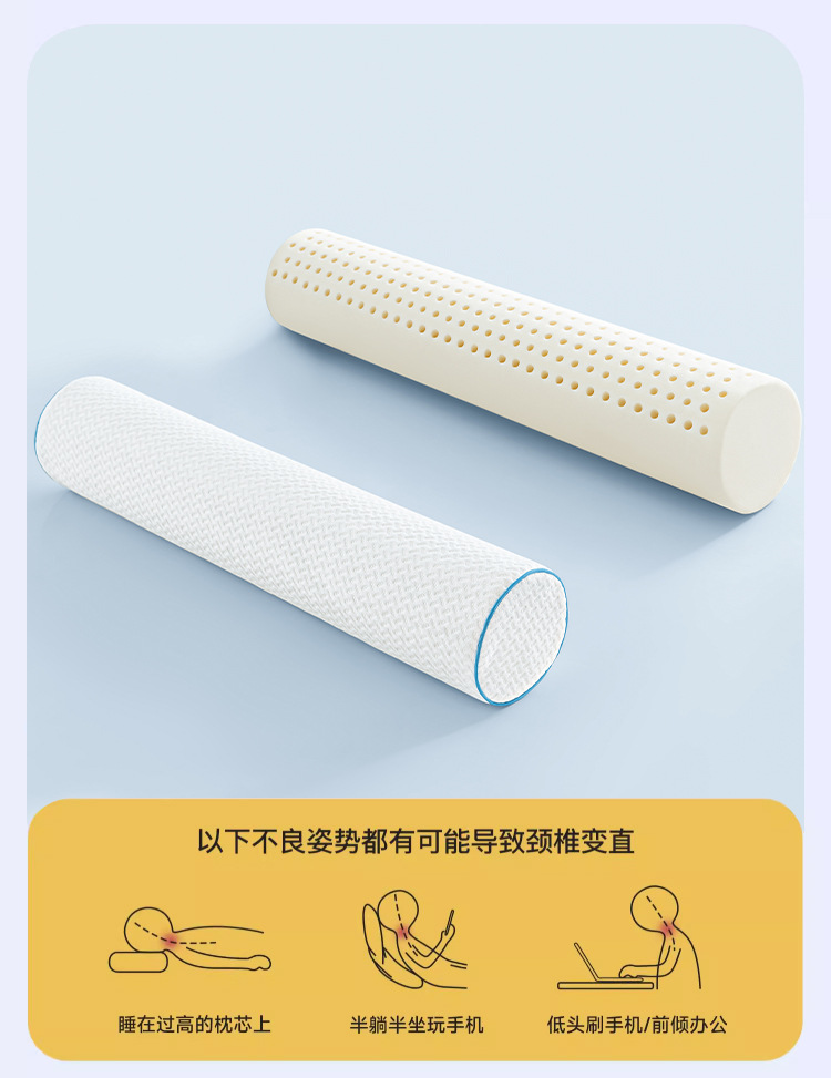태국 라텍스 원통형 베개, 경추 베개, 목 베개, 곡률 교정, 목 지지대, 수면 보조제, 캔디 베개, 척추스토어 가기