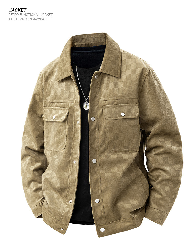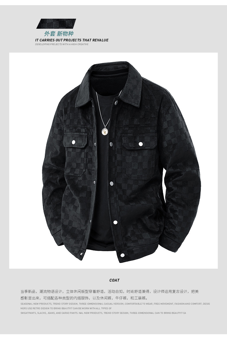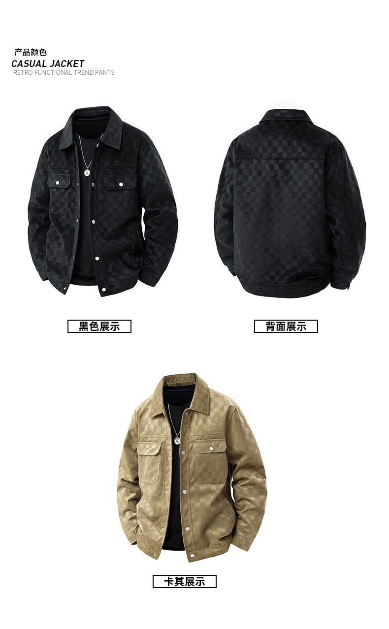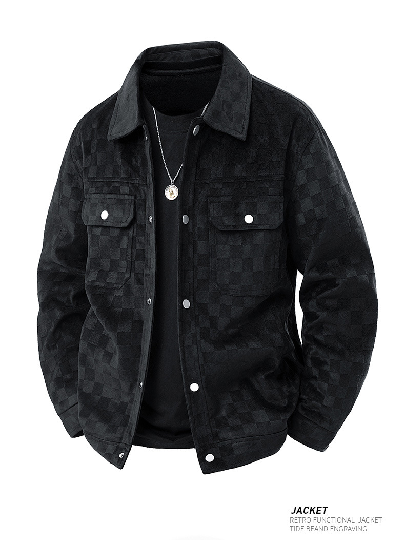 남성용 크로스보더 스웨이드 체커보드 재킷 봄, 가을 새로운 미국 복고풍 라펠 워크 재킷 남성용 탑스토어 가기