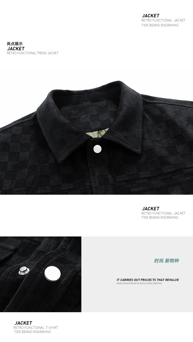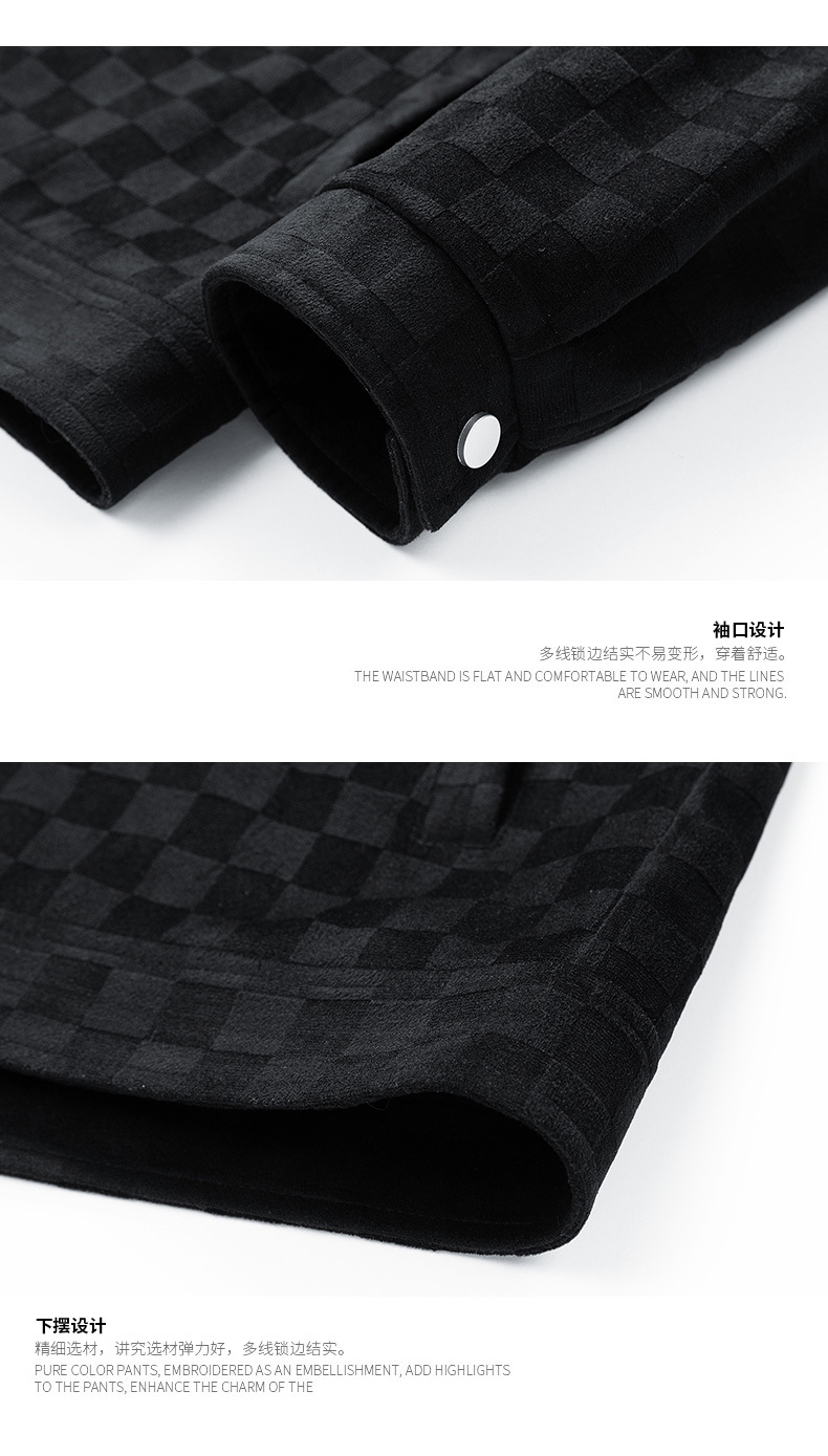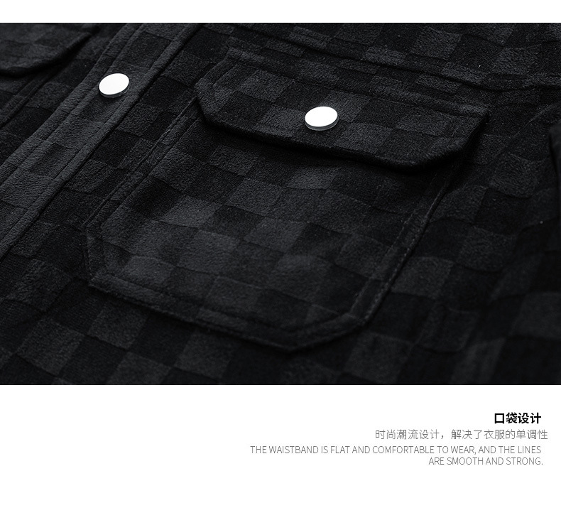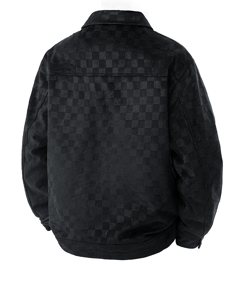 남성용 크로스보더 스웨이드 체커보드 재킷 봄, 가을 새로운 미국 복고풍 라펠 워크 재킷 남성용 탑스토어 가기