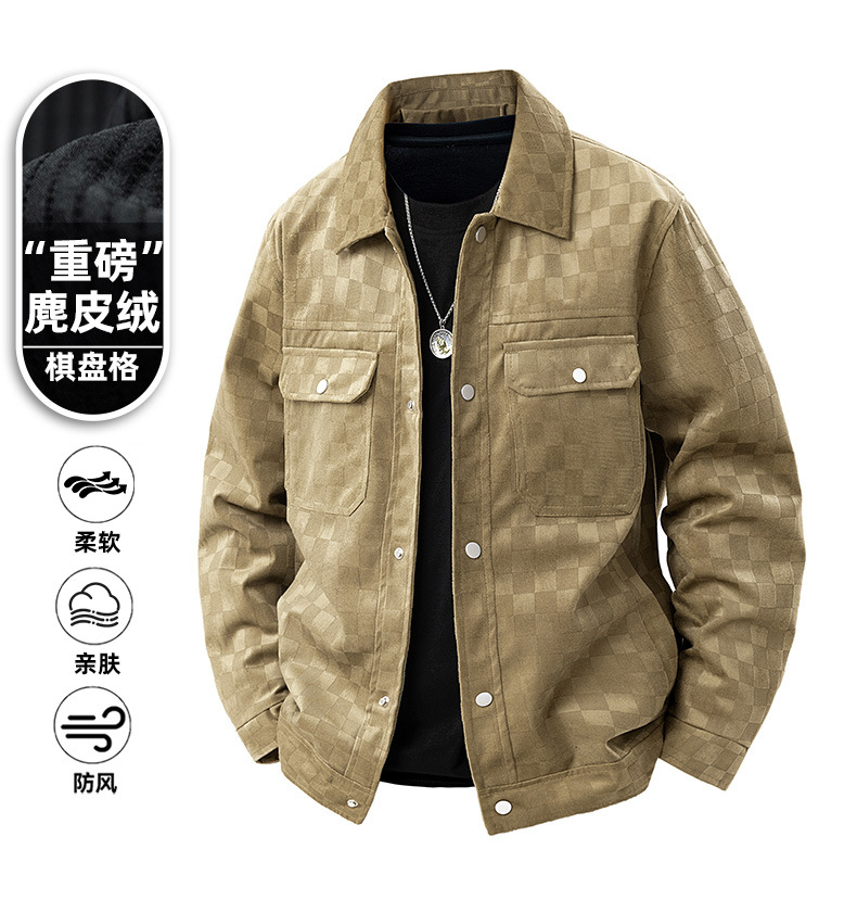 남성용 크로스보더 스웨이드 체커보드 재킷 봄, 가을 새로운 미국 복고풍 라펠 워크 재킷 남성용 탑