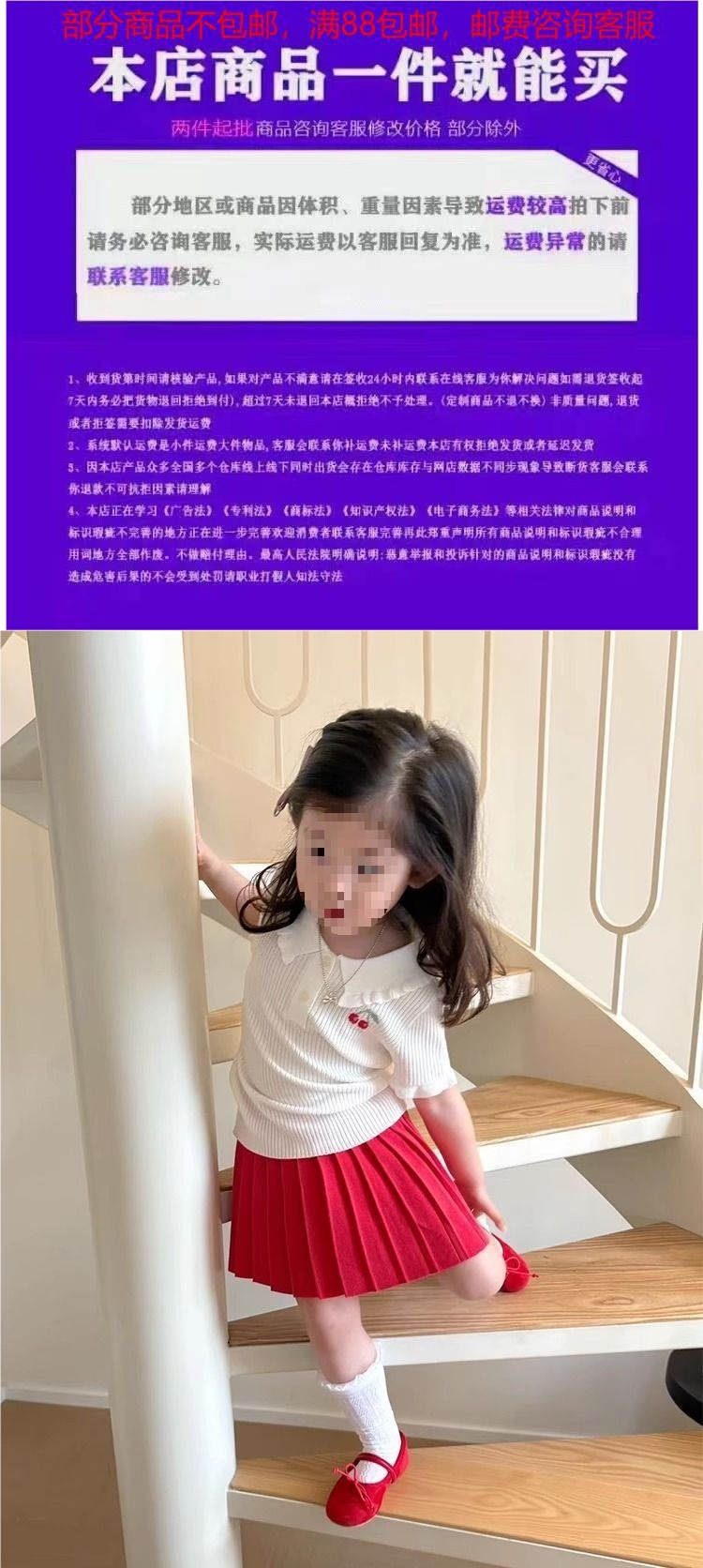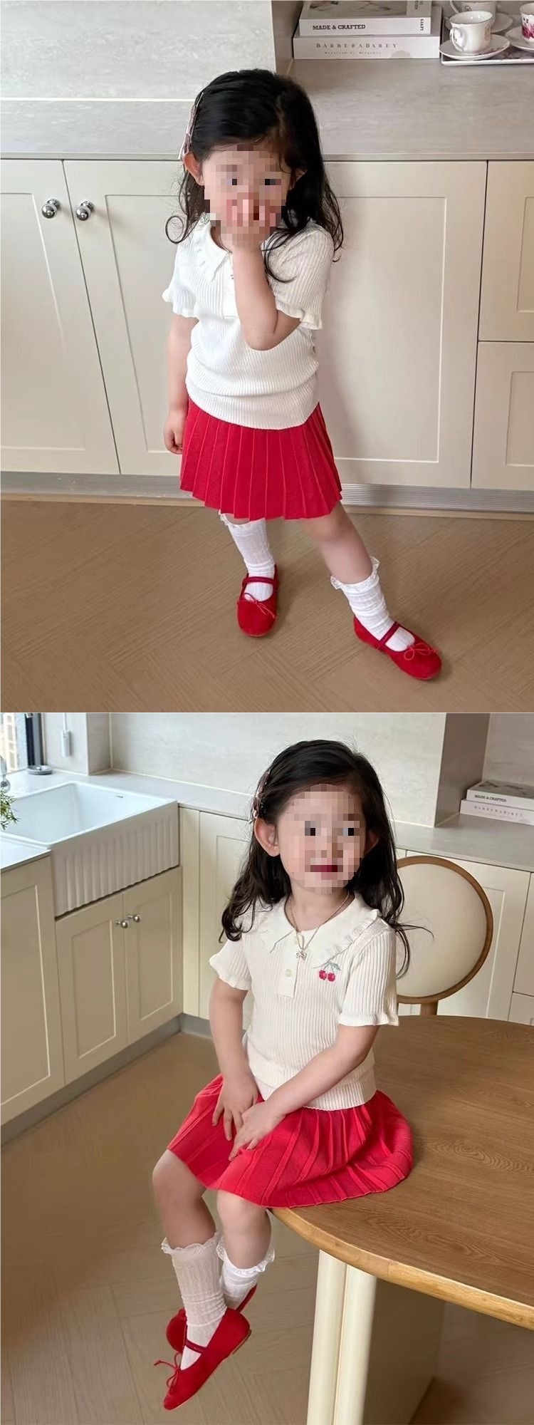 한국 아동복 여아 작은 향기 슈트 2025 여름 신작 중소형 아동 스타일 반팔 스웨터 주름 스커트스토어 가기