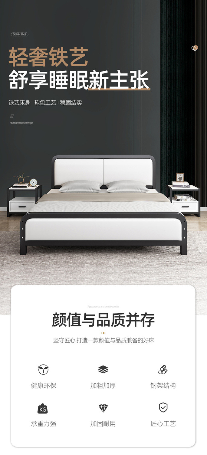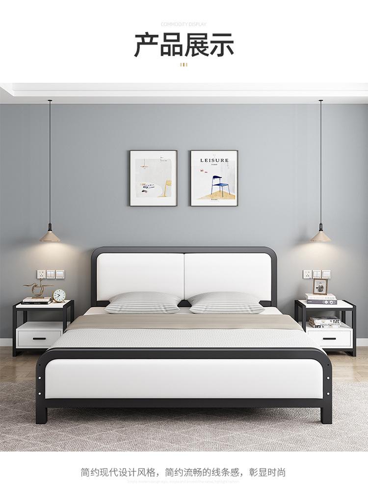 현대 간단한 철 침대 1.8 가정용 더블 침대 1.5 미터 공주 철 침대 임대 집 철 프레임 싱글 침대 침실스토어 가기