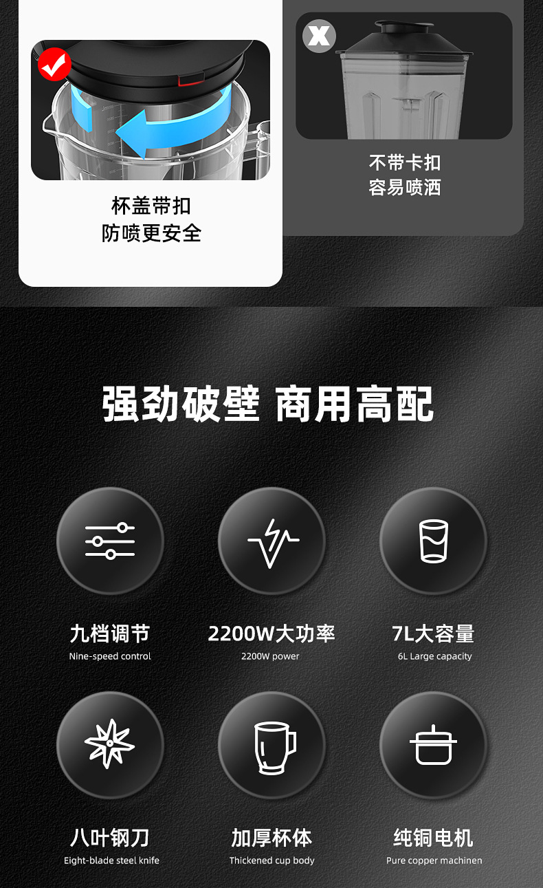 7L 상업용 벽 파괴 기계 주스 기계 가정용 스무디 기계 두유 기계 얼음 분쇄 혼합 얼음 파괴 완전 자동 요리 기계