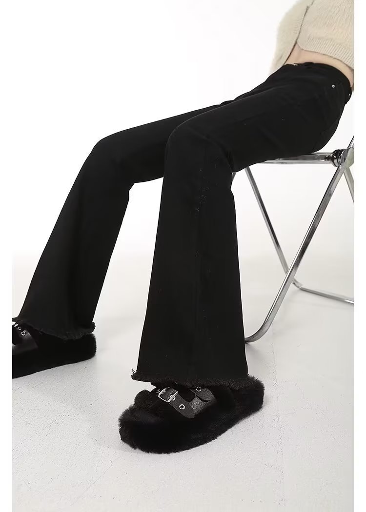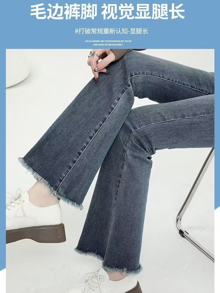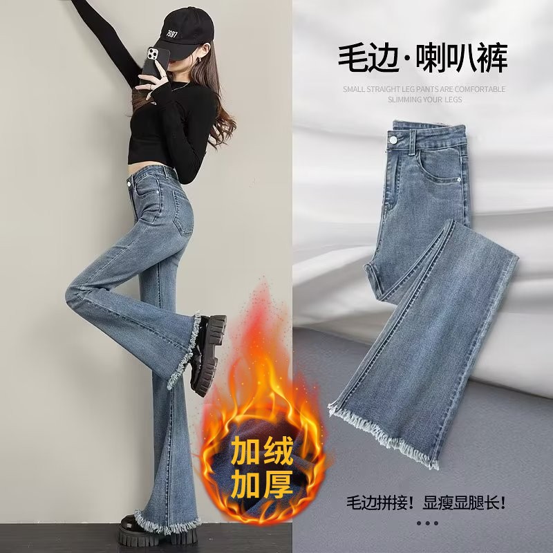 여성용 레트로 청바지, 로우 엣지 플레어 플러스 벨벳 스트레치 하이 웨이스트 슬림핏 패셔너블한 말굽 바닥 길이 바지스토어 가기