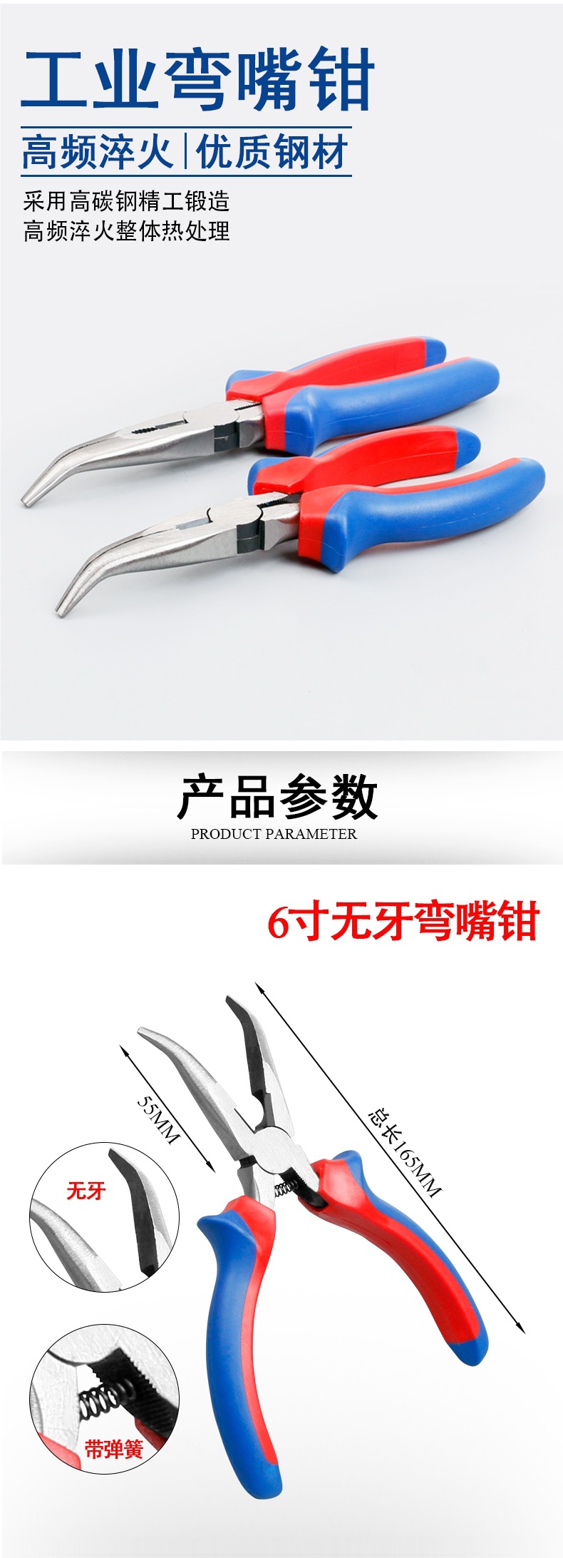 • 6inch 스프링이 달린 곡선 노즈 플라이어 [이빨 포함]