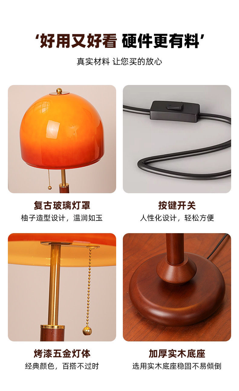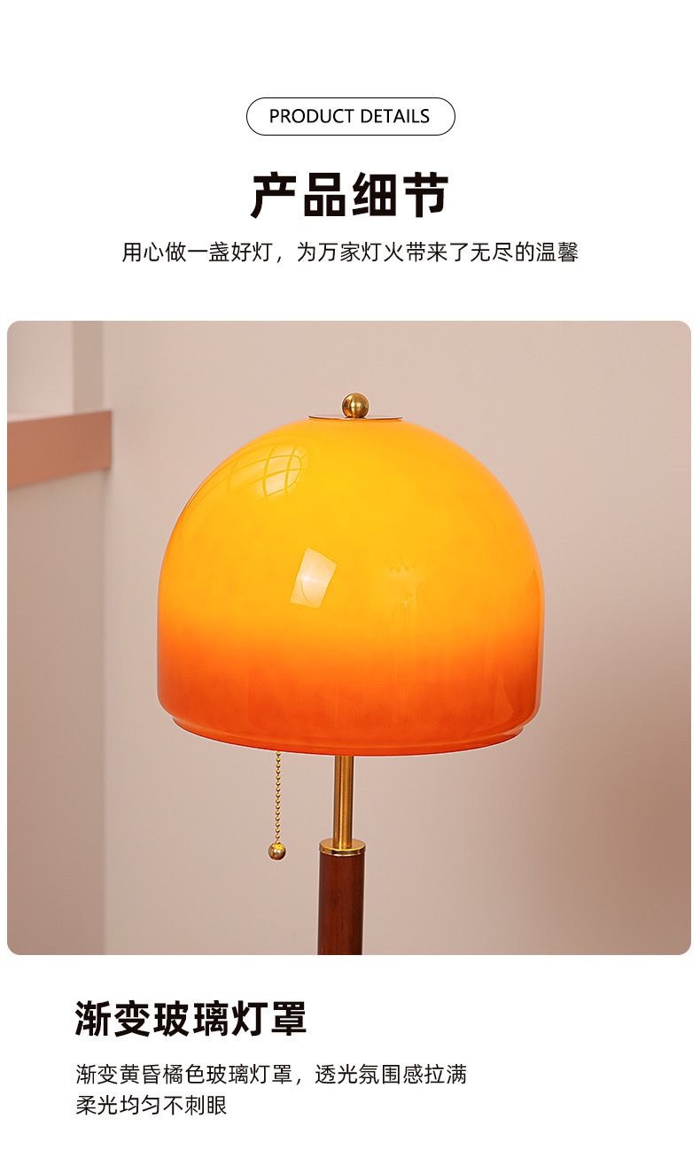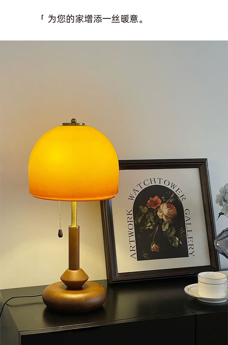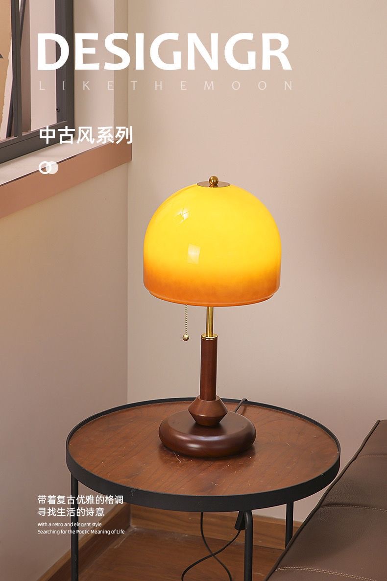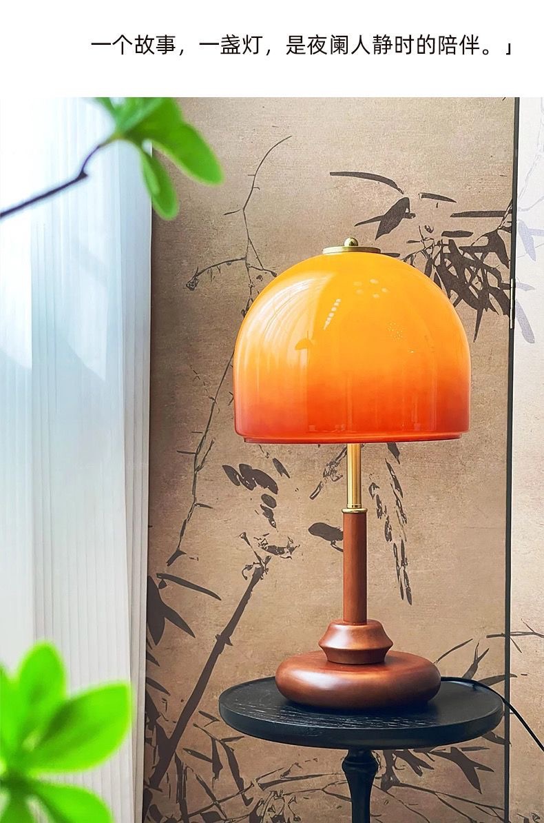 인터넷 연예인 중고 테이블 램프 복고풍 호두 색상 일몰 노란색 유리 장식 테이블 램프 미국 침실 머리맡 크리 에이 티브 램프스토어 가기