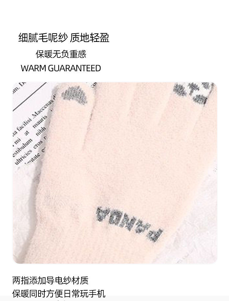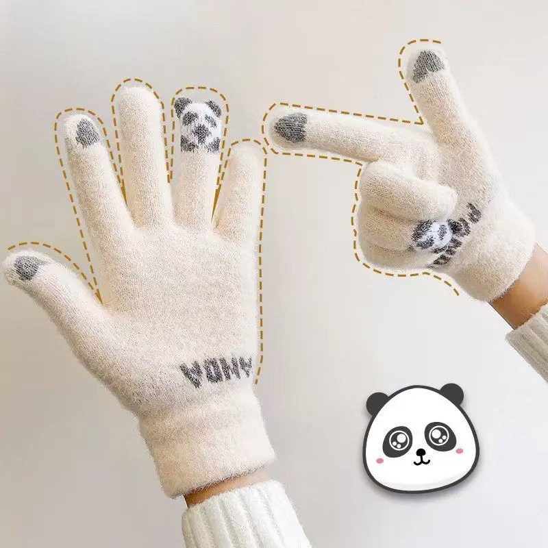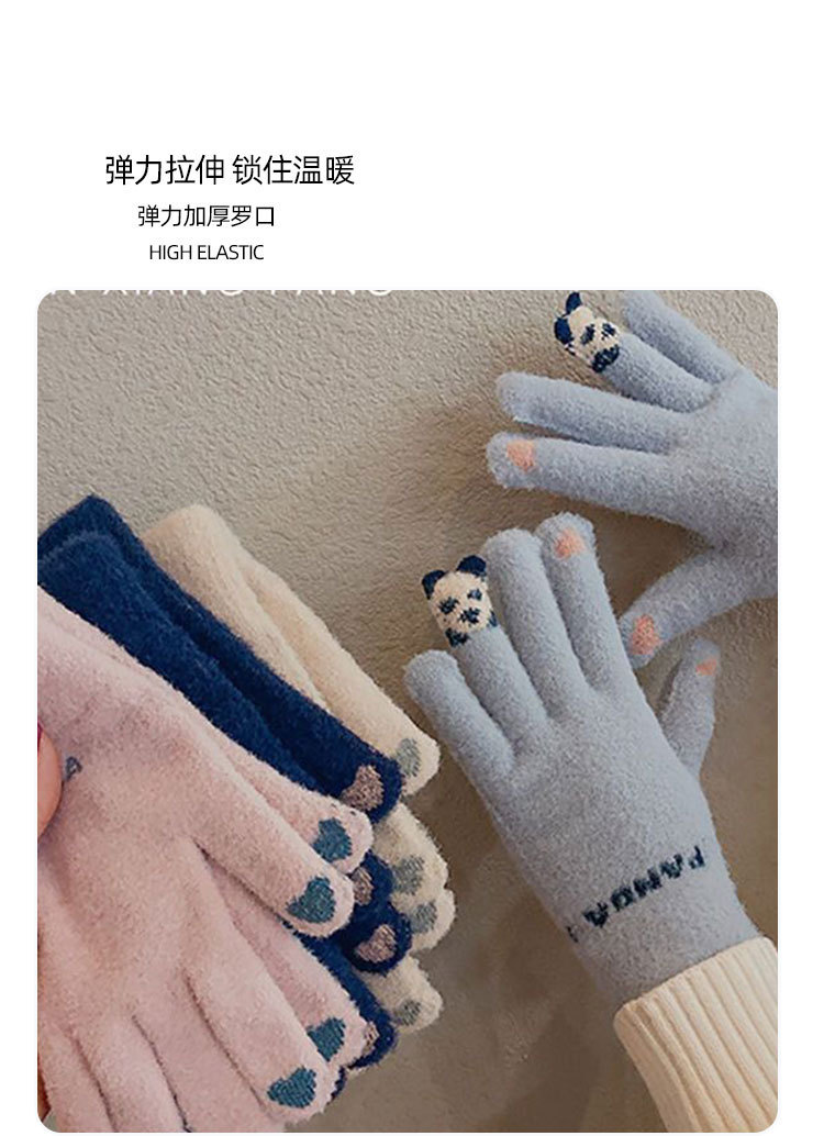 冬季加绒针织保暖翻盖手套卡通可爱触屏露指手套骑行五指手套批发
