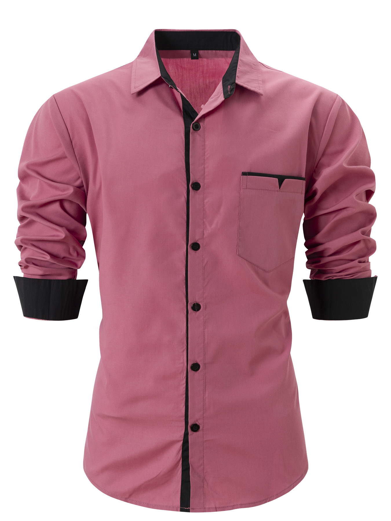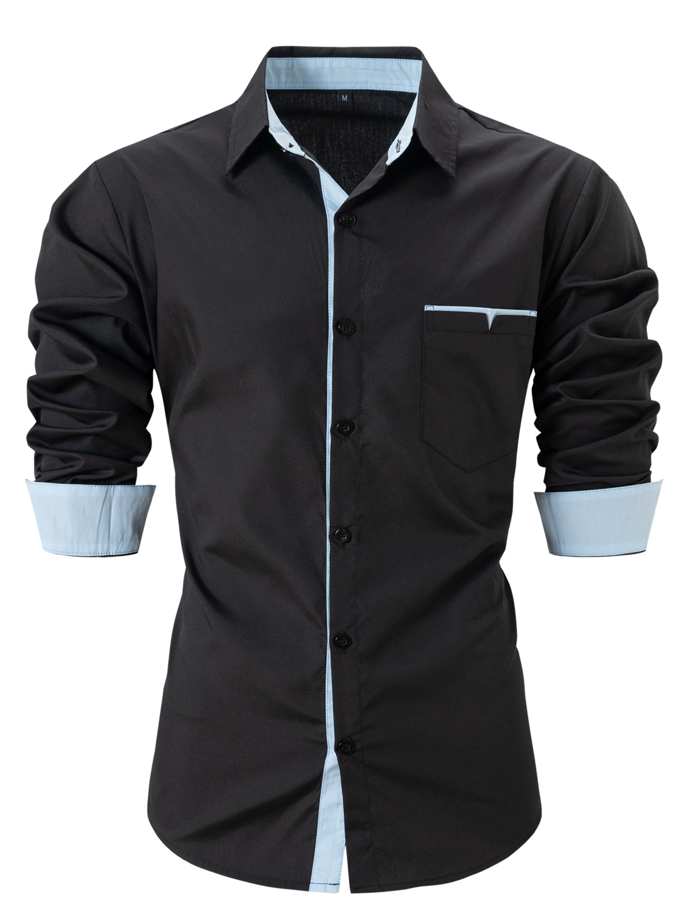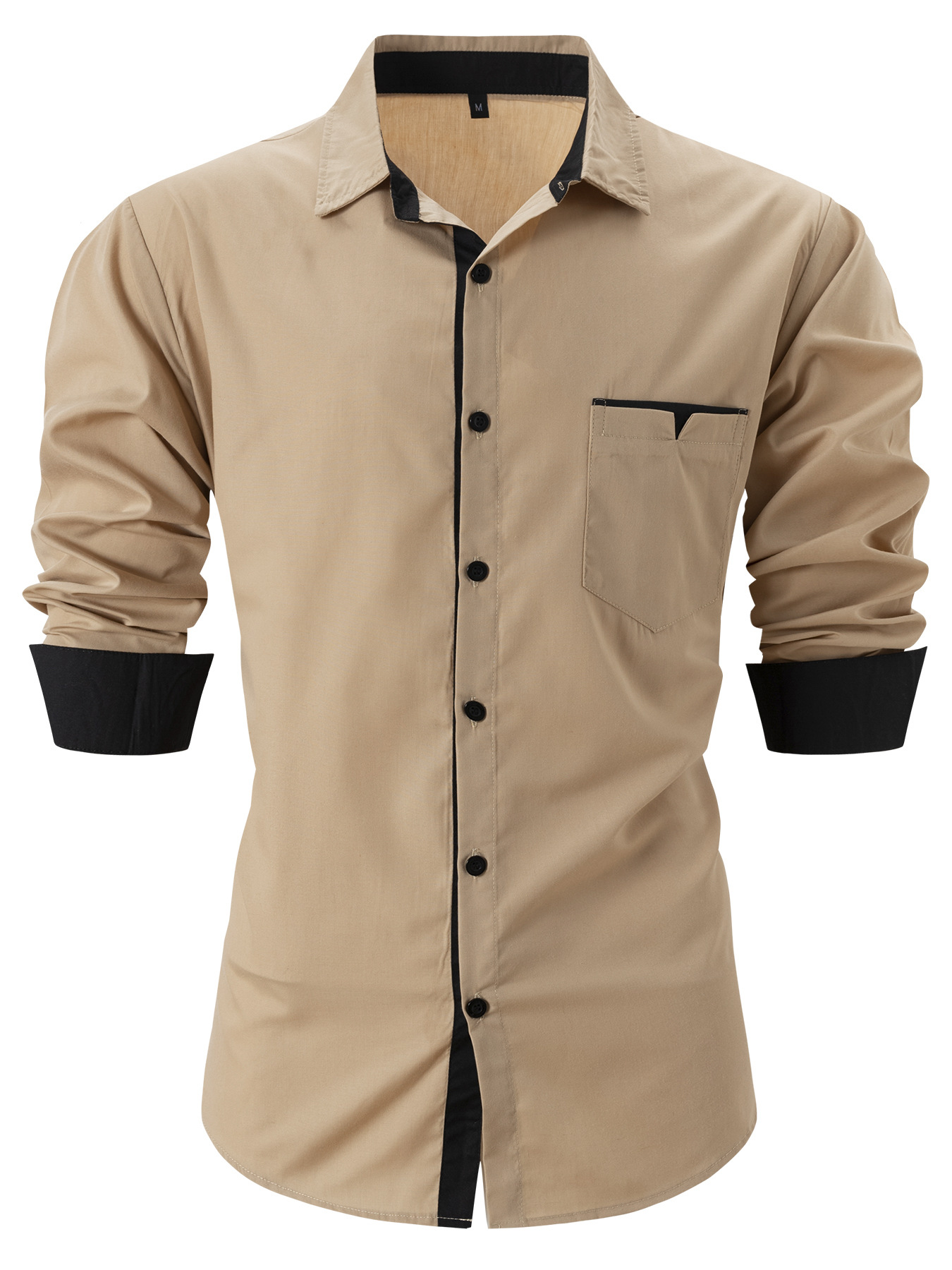 2025 크로스보더 유럽과 미국 패션 남성 봄, 가을 코튼 컬러 블록 포켓 라펠 슬림 캐주얼 남성 긴팔 셔츠